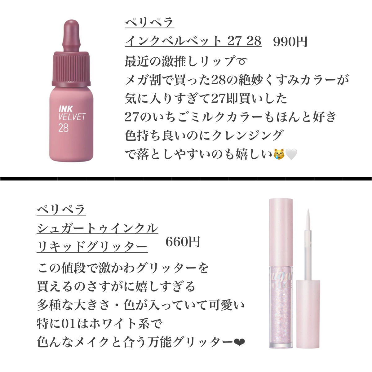 | とにかくパッケージが可愛い♡色持ちよし、コスパよし、見た目よしの三拍子揃ってます! | 詳細を見る | |