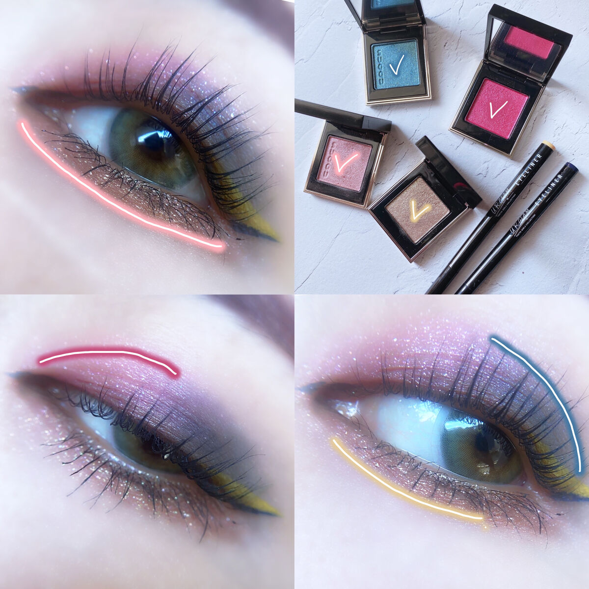 アメリのアイシャドウは粉質良いから使い勝手が良くて好き🥰 CELEBRITYは綺麗なピンクブラウンで毎日メイクや時短メイクにもおすすめ◎ 涙袋はCHANELの涙袋スティックことスティロ オンブル エ コントゥールのヌード エクラと ミルクタッチのグリッターでシンプルに🖤 マスカラは個人的ベスコス殿堂入りしているA.BLACKのMaximizing Mascara❤︎/ こちらはボリュームタイプで塗れば塗るほどボリュームアップ‼️ デジャヴュのショート筆リキッドは下まつげを書くのがめちゃくちゃ楽でおすすめ◎
