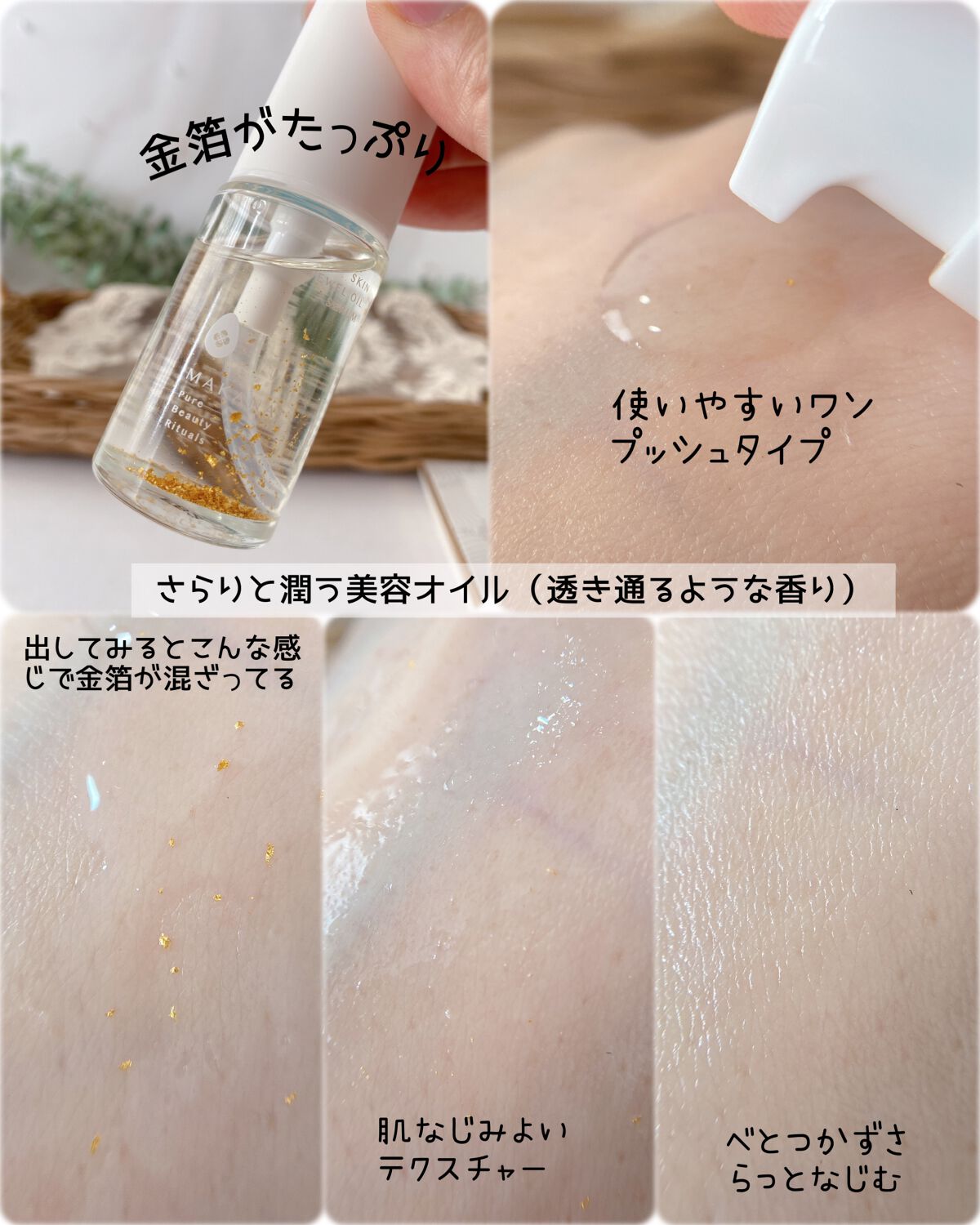 ..MAKANAI💫さらりと潤う美容オイル(透き通るような香)純度999.9‰(パーミル)の金箔と厳選した7種の植物オイルをブレンドし精油の香りをプラスしたとっで豪華なオイル✨💫金箔艶肌シート老舗金箔店(吉鷹金箔本舗)のまかないで受け継...