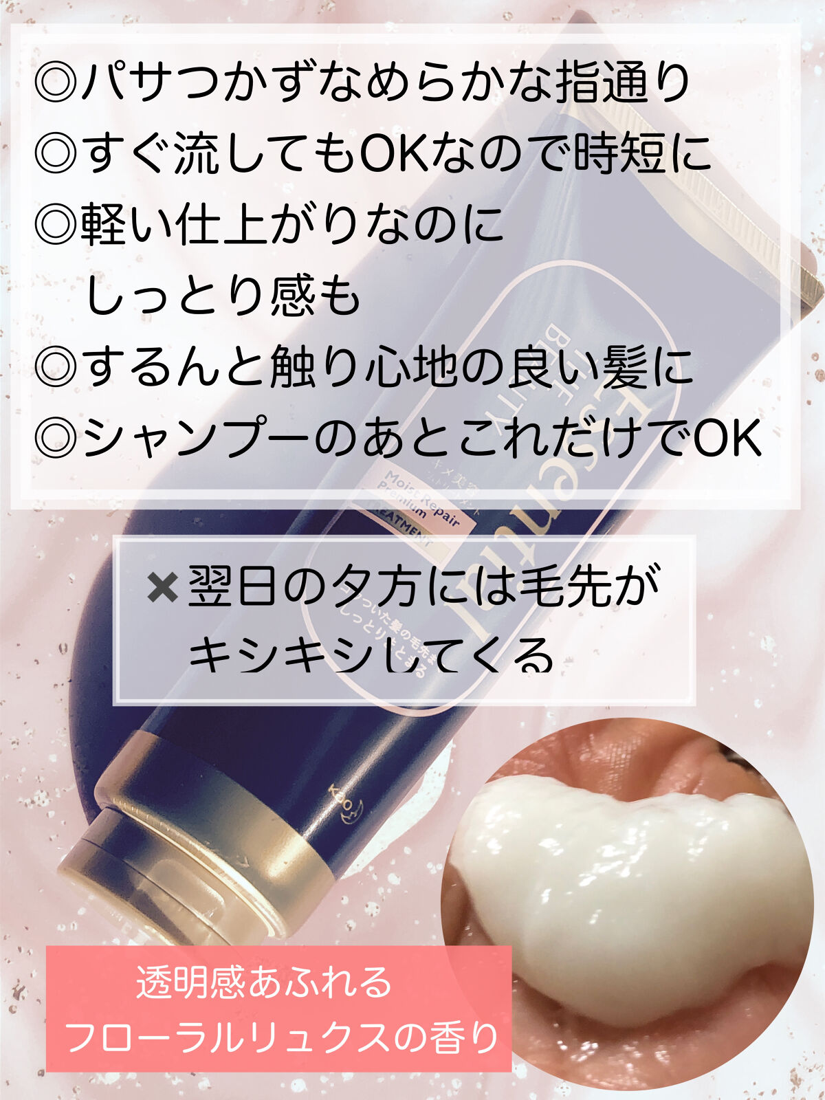 | 濃厚なテクスチャーで、髪1本1本に行き届くような感じがしました😆🎶 | 詳細を見る | ||