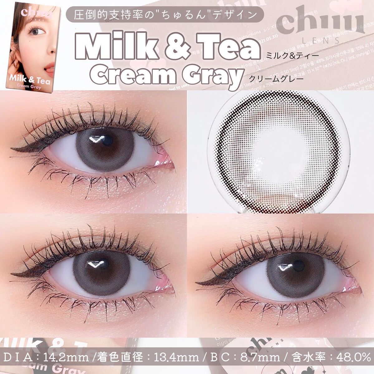 人気のMilk&TeaRoyalから着色直径13.8mm登場🍼🩶ChuuLens#PR@chuulens_japan1DayDIA14.5mm着色直径13.8mmBC8.7mm含水率38%Milk&TeaRoyalCreamGray#クリーム...