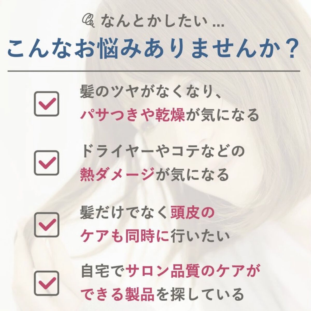 - ãšããããããªæãããªè³ªæãšãæ¯å ãŸã§ãã€ãããµã©ãµããªæéãã«å°ãçŸå®¹æ¶²ã·ã£ã³ããŒ/浞éè£ä¿®ããªãŒãã¡ã³ãã ã«ã·ãã€ç±æ¥ã®ã±ã©ãã³ãã¯ãããšãã3çš®ã®ã±ã©ãã³ãã·ã«ã¯PPTïŒã³ã©ãŒã²ã³PPTãCMCé¡äŒŒæåãªã©ã®ãã ãã£ãŠé åããè£ä¿®æåã ãã§ãªããã»ã©ããããã¢ã«ãã³é žããªãŒã¬ããã¯ãªã€ã«ãªã©ã®çŸå®¹ä¿æ¹¿æåããã£ã·ãé åããããšã§ãç¹°ãè¿ãã«ã©ãŒãç±ãã¡ãŒãžã«ããããµã€ãã»åºããã»ãŽã¯ã€ããªã©ã®èç©ãã¡ãŒãžã«ããã£ããã¢ãããŒãã (ã·ã£ã³ããŒ) è£ä¿®ã±ã¢ã¯ãã¡ããããã¡ãŒãžæ¯ã«ãé æ ®ãããªããããªæŽãå¿å°ã远æ±ããã¢ããé žç³»æŽæµæåã ãã§ãªãPPTç³»æŽæµæåãèŽ æ²¢é åã®ãã ããæããåŠæ¹ã§ããã·ãŸããšãããããã«ãªããããªæŽãäžãã«ã (ããªãŒãã¡ã³ã) 髪ã®å€éšã»å éšããåæã«é«ªã®1æ¬1æ¬ãå ã¿èŸŒãã§ãã¡ãŒãžéšåãçæ°Žåããããšã§ãæéãããã€æã ãã§ãªã髪ã®è³ªæãæŽããŸãã ãŸãç±ãå©çšããŠé«ªãè£ä¿®ããããŒããªãã¢æåãé åã ãã©ã€ã€ãŒãªã©ã®ç±ãã髪ãå®ããåæã«ãã¡ãŒãžã±ã¢ãã æž æ¥ãªäžåããçºããã¯ã€ããããŒã©ã«ïŒãã¢âã®éŠãã