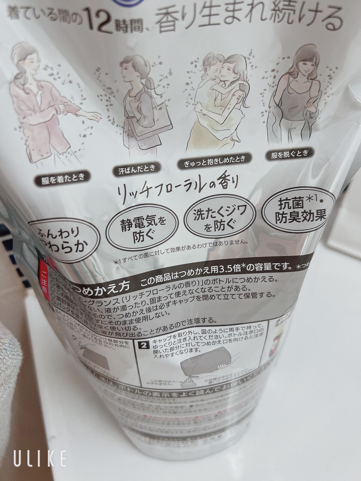 ハミング フレア フレグランス リッチフローラルの香りは、高級感溢れるお花の香り。シリーズの中では結構甘めで濃いめですが、柔軟剤なので重くなりすぎずいい香りを纏えます。 私は結構香り付けメインで使いたかったので多めに入れていますが、服が汗で濡れた時やタオルで顔を拭いて濡れた時など、ふわっと心地よく香りました。 濃いめの香りが好きな方はぜひ使ってみてください!結構誰にでも好かれる香りだと思います。