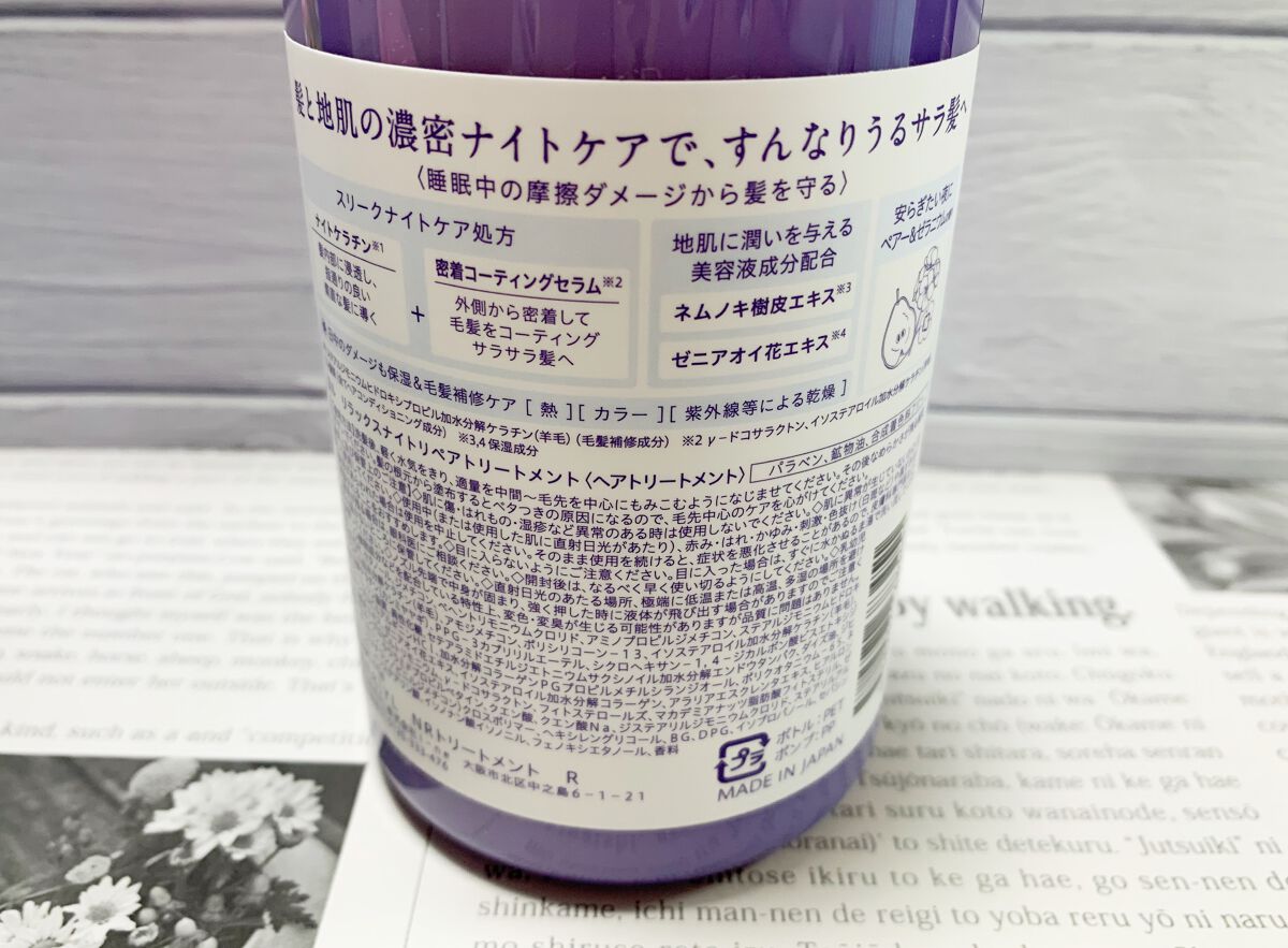 - 睡眠中の摩擦ダメージから髪を守る。髪と地肌の濃密ナイトケアで、すんなりうるサラ髪へ。安らぎたい夜に、ペアー&ゼラニウムの香り。