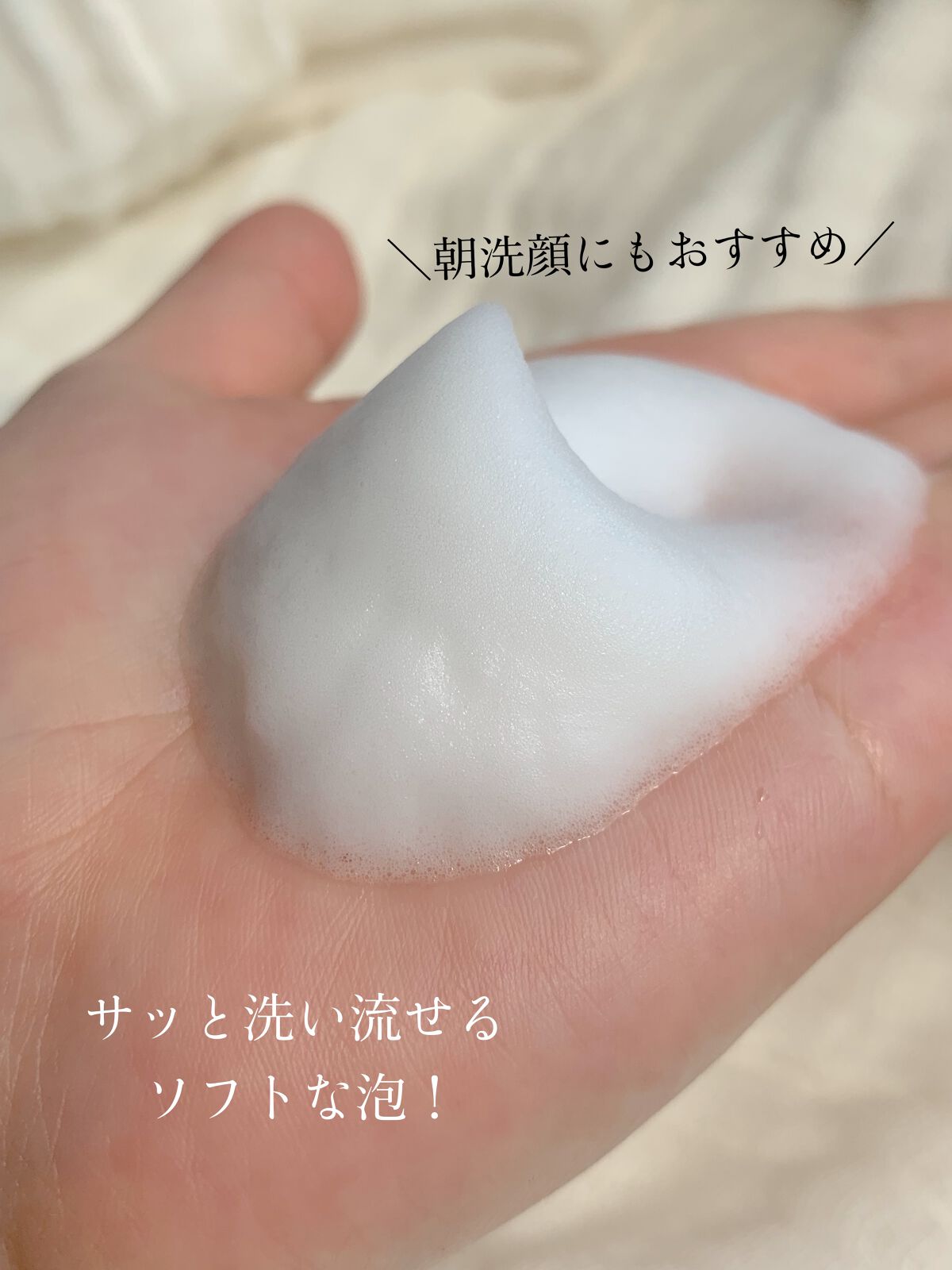 - もっちりとした泡をすべらすように馴染ませることで、少ない刺激で汚れを浮き出します。 古くなった角層や皮脂を洗い流しながらも、アミノ酸をはじめとする保湿成分もしっかり配合。 必要な油分まで落としてしまうことがなく、洗いあがりがつっぱりにくい。 ワンプッシュでキメ細かいふわふわ泡が出来上がり、朝のスキンケアも時短に。