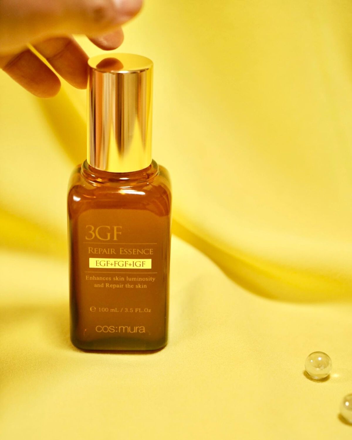 コスムラの3GFエッセンスはエイジングケアの定番とも言える成長因子を3つ(EGF、FGF、IGF)も含有しています。 水溶性美容液で水分補給もバッチリ、しかも刺激が少ないです。 高級感のあるデザインと成長因子3つEGF、FGF、IGFが含まれているとても贅沢な美容液なのでここ最近年齢肌が気になっている私にもすごく使いやすくてとても嬉しいです。