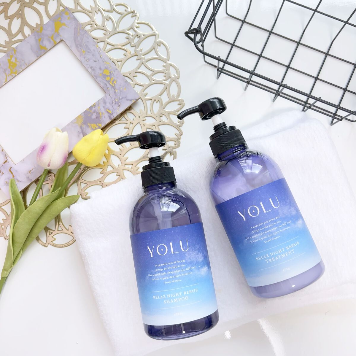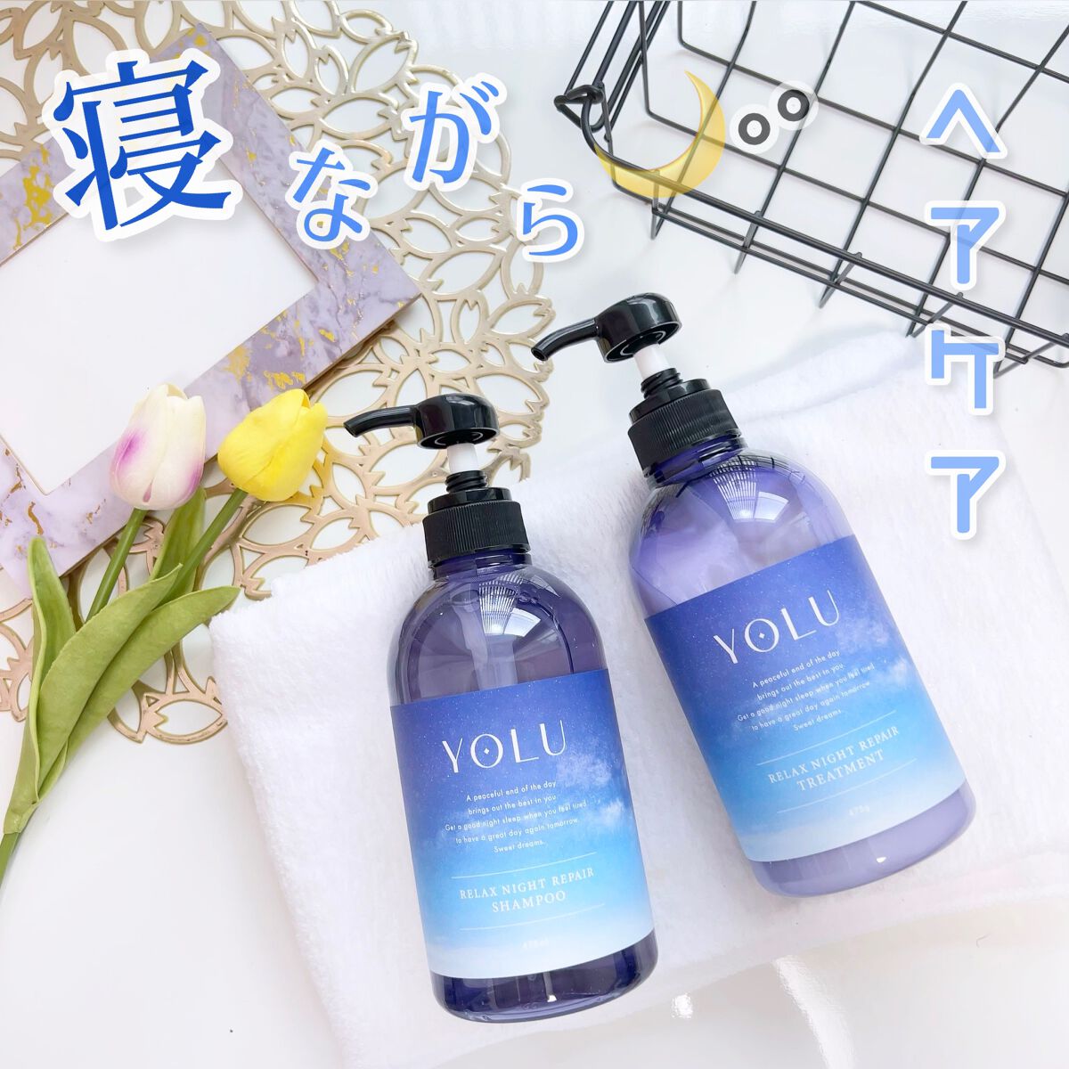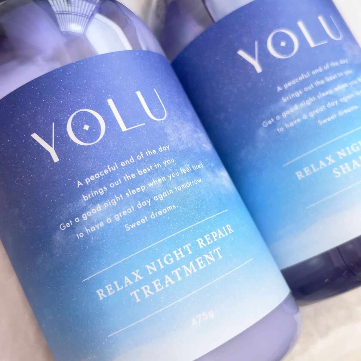 YOLU「リラックスナイトリペアシャンプー/トリートメント」✔️夜間美容でうねりをケアして※サラサラ髪へ導いてくれるそう✔️日中に受けた紫外線などによる地肌へのダメージ※1をケア。夜間の頭皮の乾燥を防いで、すこやかでうるおいのある状態をキープ...