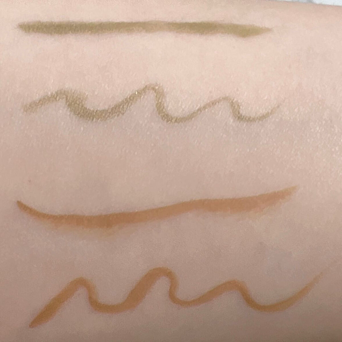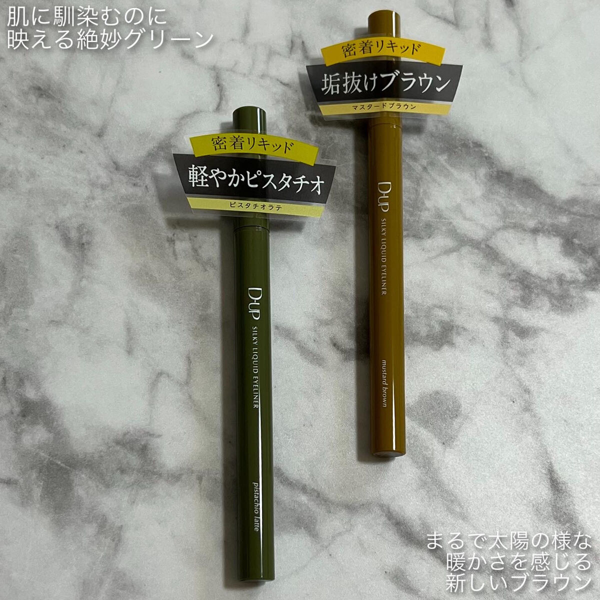 - 筆先までずっとなめらか、目尻で感動するリキッドアイライナー。 必要な量が肌にのる新設計で、まぶたの上をすべるような、滑らかな描き心地。しなやかでコシのある筆が、筆圧のコントロールを容易にし、太いラインも細いラインも思い通りに仕上げます。水、汗、涙に強いウォータープルーフタイプなのに、通常洗顔で簡単オフ。肌に色素が残らない顔料を使用。5種類の美容液成分を従来品の200%配合し、メイクしながら目元ケアまで。 ●ブラウンブラック ※2020年9月12日 バラエティショップ先行発売 ●漆黒ブラック ※2020年12月頃発売予定 ●ナチュラルブラウン ※2020年12月頃発売予定 ●シフォンブラウン 「毎日メイクに透明感と抜け感」 ブラウンでも、グレーでも、ベージュでもないニュアンスカラー。 自然な印影で素の目元を際立て、頑張りすぎない、ふんわりとした目元に。 ●アプリコットブラウン 「じゅわっと血色感。 肌に馴染むおしゃれカラー」 温かみのあるアプリコットがじゅわっと滲む血色感を目元に演出。 肌馴染みが良いので、カラーライナーに抵抗がある方もブラウンの延長線上で楽しめる、使いやすい色味です。 ”ちょっとオシャレ”な空気感を演出するカラー。 ●ピンクショコラ アイライナー 「ピンクが溶け込む濃厚ブラウン」 肌馴染みが良く、目元にじんわり血色感をプラス。 さりげなく女性らしさが加速するようなカラー。 ●ピスタチオラテ (2022年7月29日(金)発売) 「“目尻”に抜け感アクセント」 肌に馴染むのに映える絶妙なグリーン。 トレンドカラーに“くすみ”と“抜け感”をプラスしたまろやかな発色。 ●マスタードブラウン 「“イエロー”が揺れる、大人の洒落色」 (2022年7月29日(金)発売) まるで太陽のような暖かさを感じる新しいブラウン。 ほんのり感じるイエローでメイクが一気に垢抜ける稀有な色。 ●シフォンピンク(2023年2月10日発売) 「ふんわり柔らか"まろみピンク"」 甘くなりすぎない青みニュアンスで目元の透明感UP。 目元を引き締め、ピンクメイクにありがちな腫れぼったさを解消。 ●ミルクカプチーノ(2023年4月21日発売) まろやかな深みの“優しい締め色” どんなメイクにも合わせやすいカラー。 自然な陰影でさりげなく目幅を拡張します。 ●グレーカシミア(2023年10月1日発売) ブラウンがほんのり溶け込んだ、暖色グレー まろやかな発色で、パーソナルカラーを問わず肌に馴染む 目元の陰影になりすまし、抜け感と目力を欲張りに叶える ●ダークフィグ(2024年6月1日発売) するする”なめらか。描きやすいのに、落ちにくい。 クッキリ可愛いほの甘ダークブラウン ●ピーチモカ(2024年8月1日発売) ふわっと自然に盛れる“桃色ブラウン” ほんのり血色感で目元にうるみ感を演出 ●スターダストブラウン(2024年12月11日発売) キラッと繊細に輝く''星屑ブラウン'' 透け感のあるダークブラウンの色味とラメの輝きが、目元に艶のある立体感を演出 ●チャコールモカ(2025年4月10日発売) 目元を締める''深みグレージュ'' 黄みや赤みに偏りすぎない絶妙な色設計で、自然に目元を強調