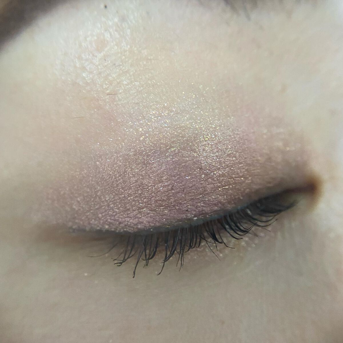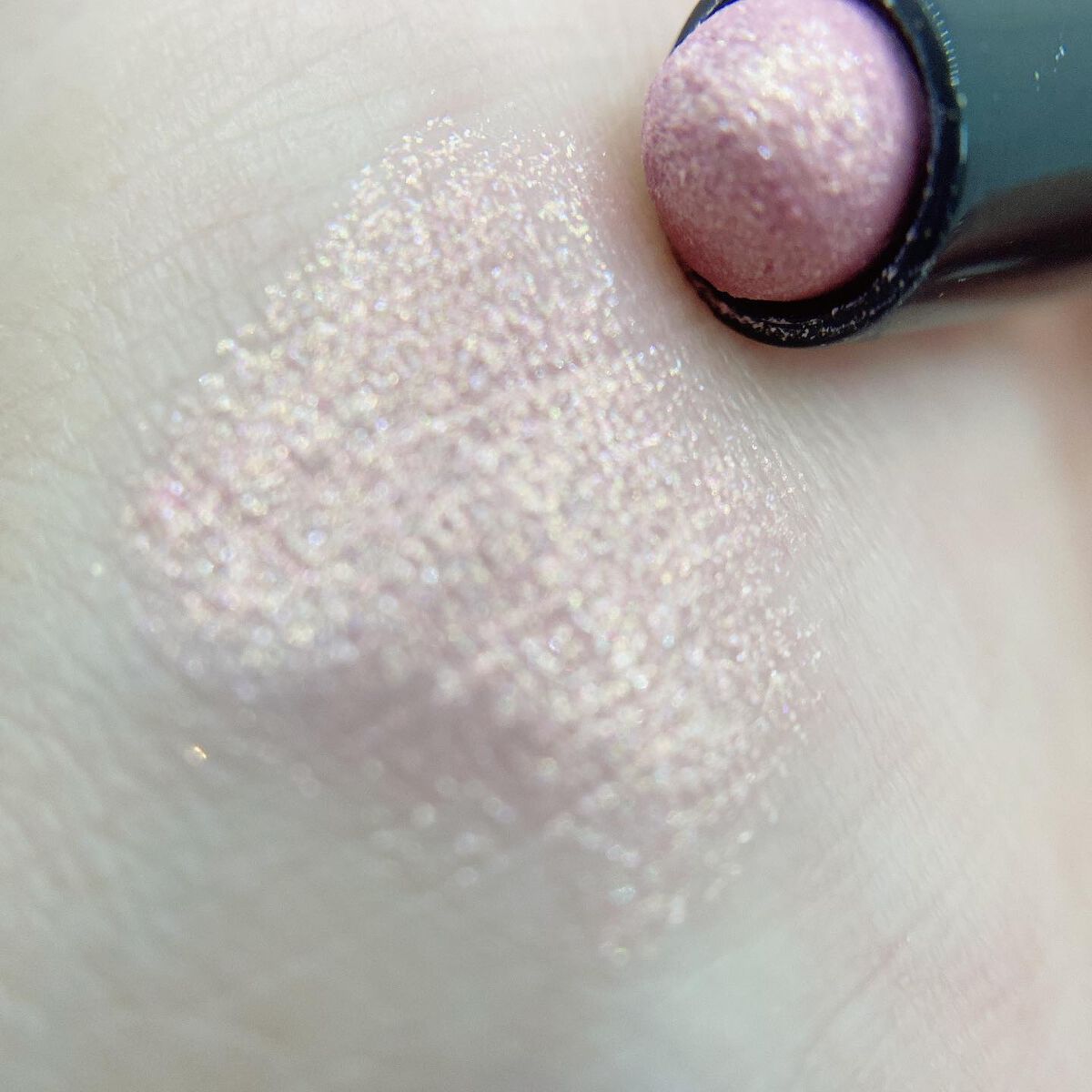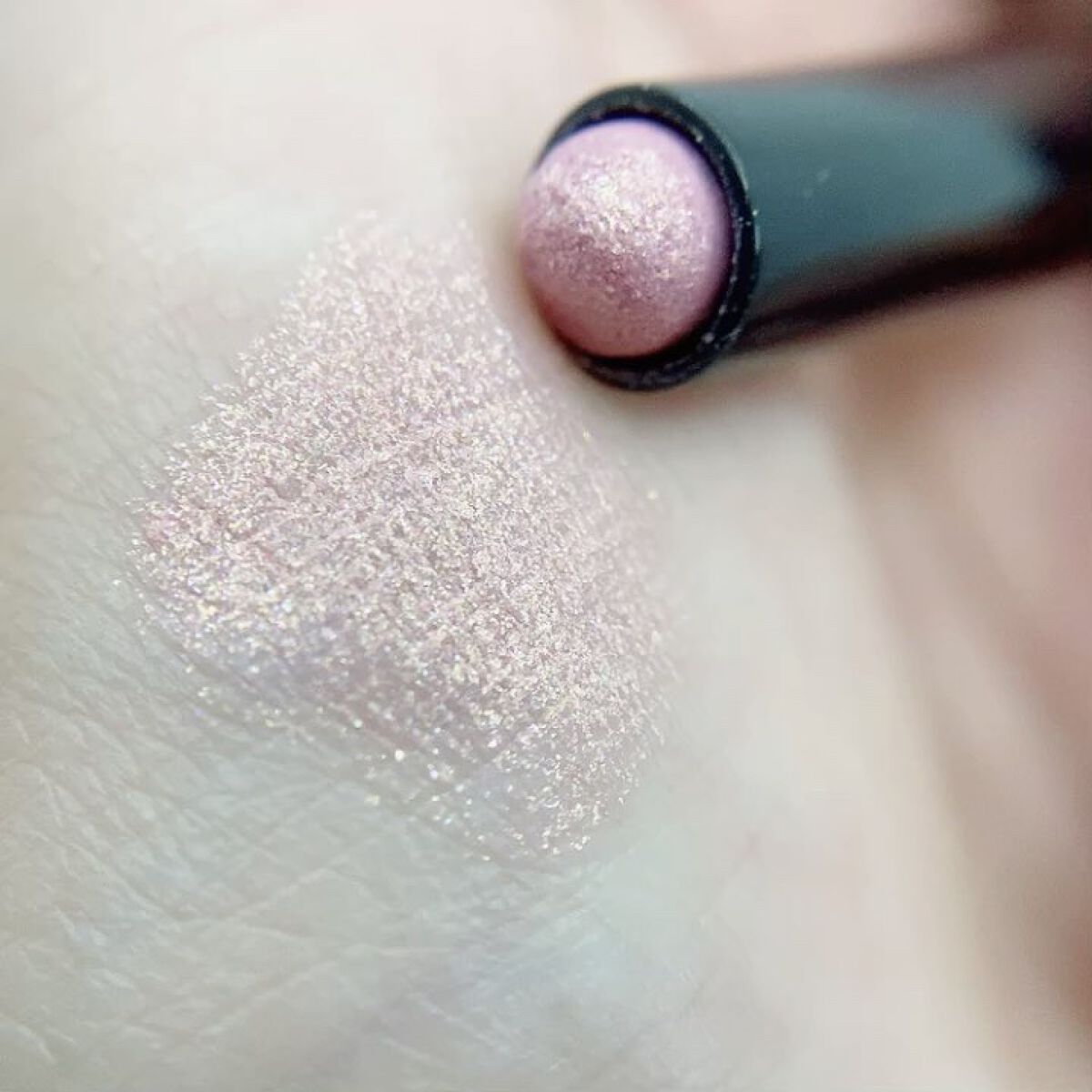 質感:マルチクロム ピンクにゴールドラメ 偏光パール ぼかすとピンクは控えめになりゴールドラメがしっかりでる印象 涙袋エリアに使うと可愛い 上まぶたはベースだけでなく仕上げに足すのも良かったです 定着すると崩れにくく擦れにも強いシャドウスティック のせてすぐであればぼかせます