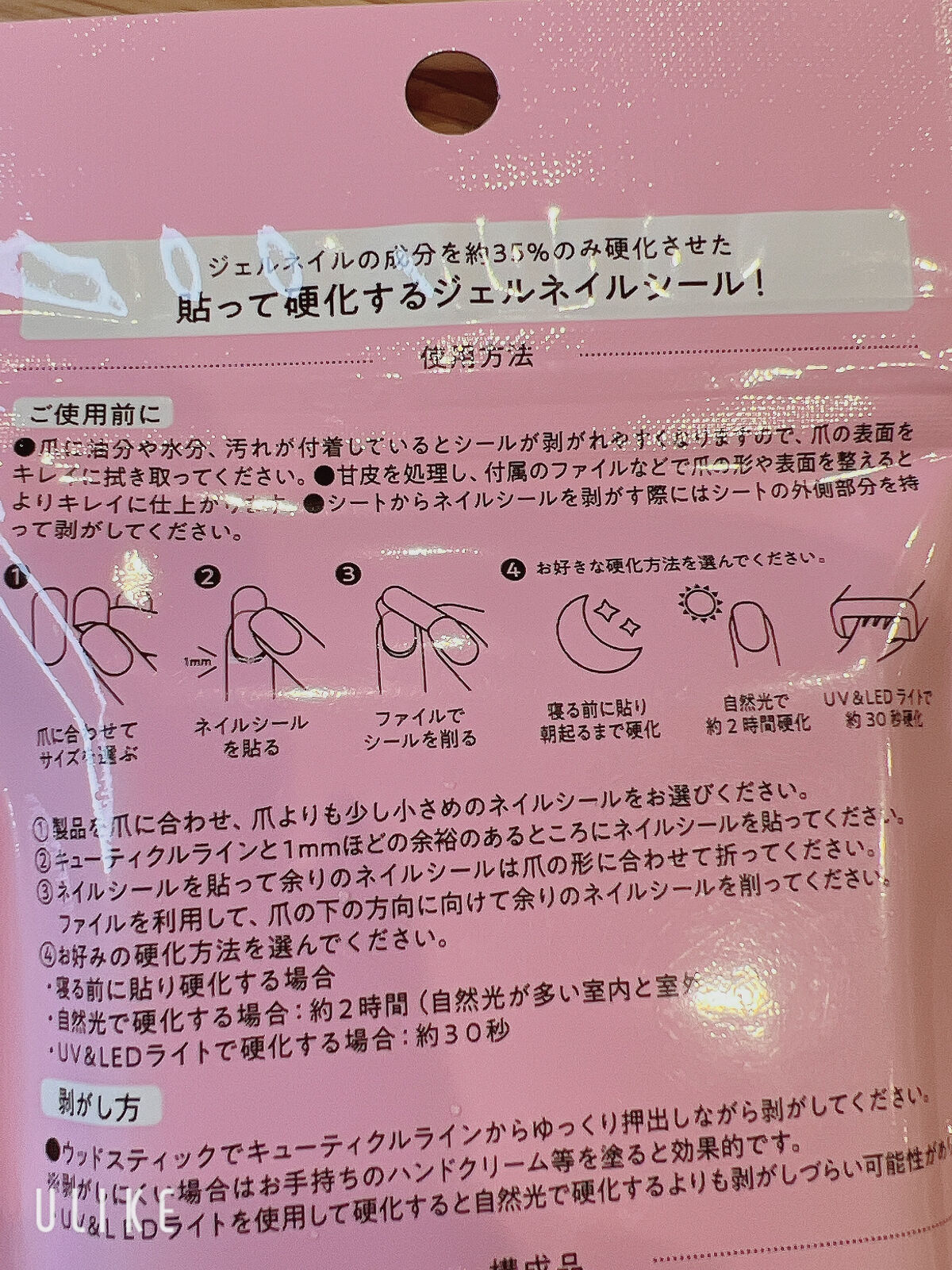 - 装着&OFFが簡単!週末だけでもジェルネイルが楽しめる♪貼って寝るだけで朝には硬化。忙しい女性のオシャレの味方ビューティーアベニュー 素材にもこだわっていて、貼ってそのまま寝ているうちに硬化できてしまう素材で簡単で楽チンなのは忙しい女性にはとってもありがたいアイテム◎フィット感も抜群で貼りやすく、水にも強いのが特徴でネイルの持ちも◎ 約2週間は持つのでマニキュアの様に塗り直しの手間も必要なし!そしてなんと言ってもお値段のお手頃さ!!
