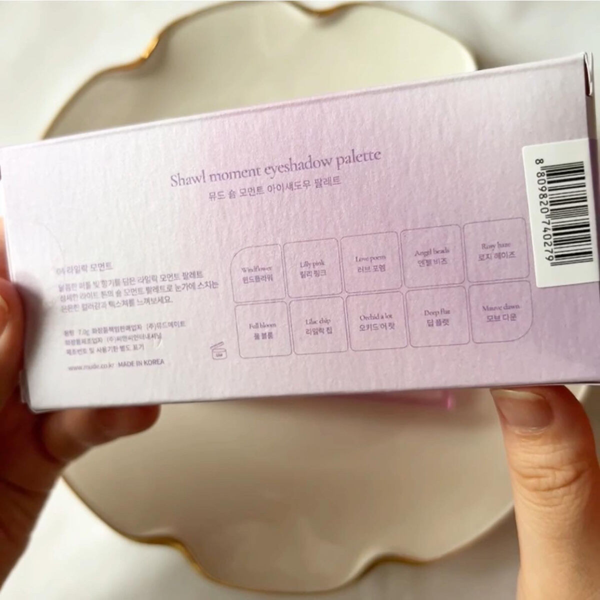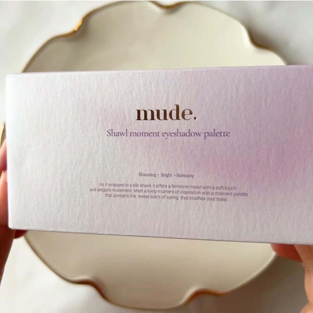\mudeショールモーメントアイシャドウパレット/01 ウォームメモリー02 ミューズモーメント03 ピーチメモリー04 ライラックモ―メント05トフィーナッツラテ06バニラティーラテ箱も可愛いし色味も可愛いし最高すぎる💞#mude#ショール...