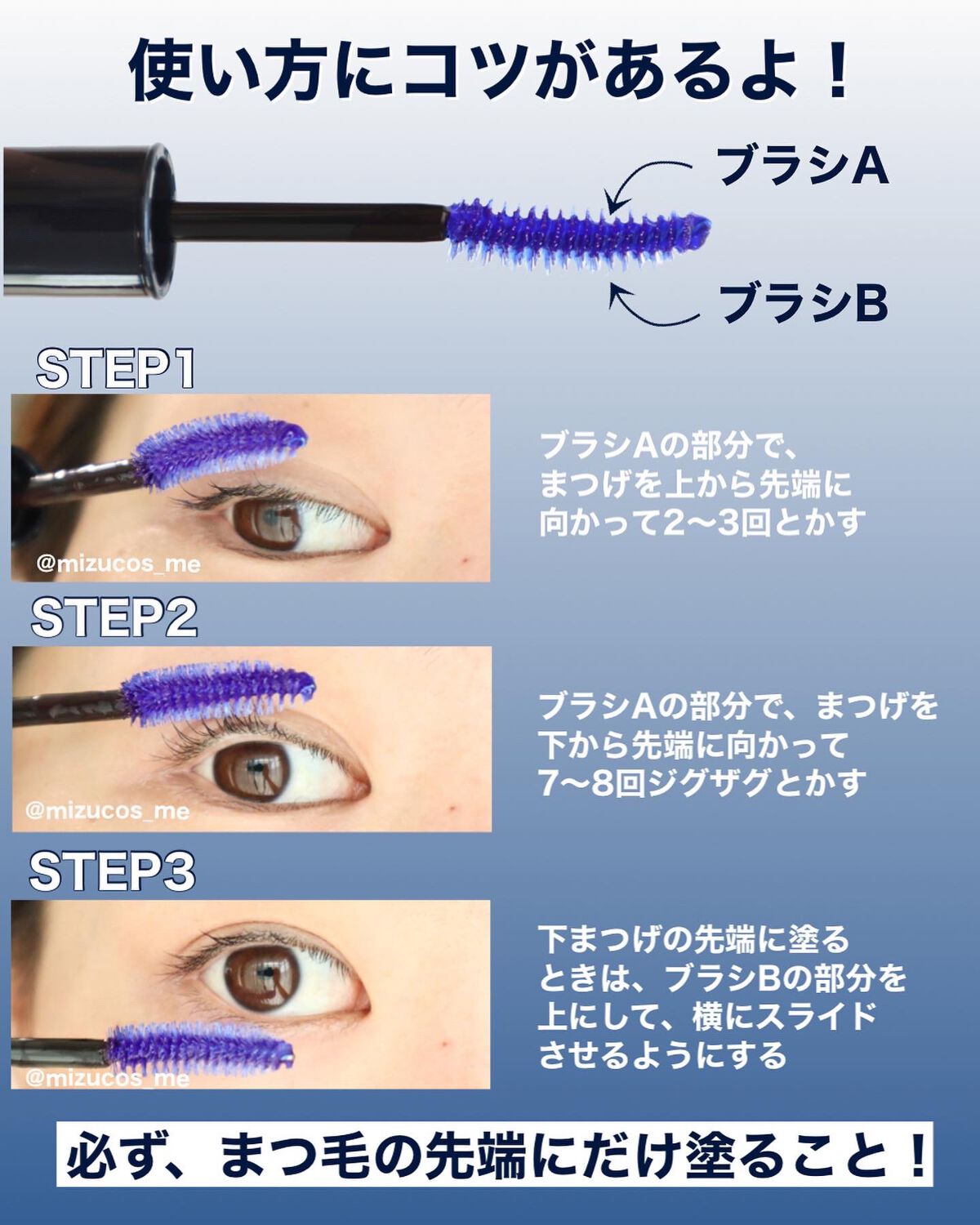 見えないまつ毛を染めて目力アップ、まつ毛ティントです💙 魔法の3days*で目力アップ!まつげの先端は透明で目に見えにくいため、“魔法の青”のラッシュティント成分でまつげを染めて驚きのすっぴん美ロングまつ毛に。 このティント効果がずっと持続はしないので1週間に1回ペース(連続3日間)で使用すると染まった効果が持続しやすいそうです👀💙