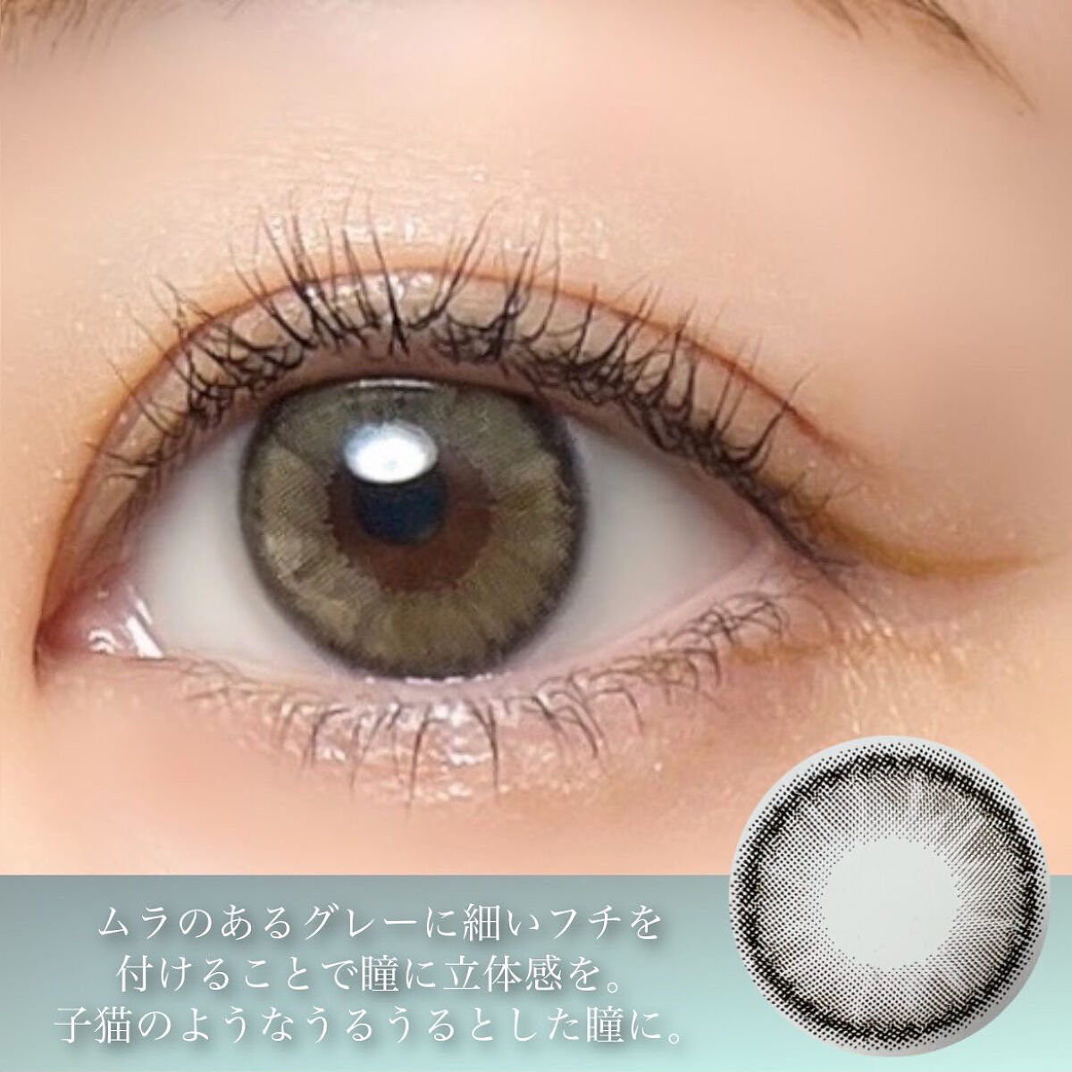 個性的なカラーからナチュラルなものまで幅広いラインナップで見てて楽しかったです! 透明感のあるブルーグレーが瞳に溶け込み、リアルなグレーアイに見せるレンズ。 透け感のある色味だけどしっかり発色するナチュラルハーフ系カラコン。着色直径も小さめなので着せ替え感があってかわいい。 N's COLLECTIONはレンズのつけ心地もすごく良くて他のカラーもとっても可愛いです!