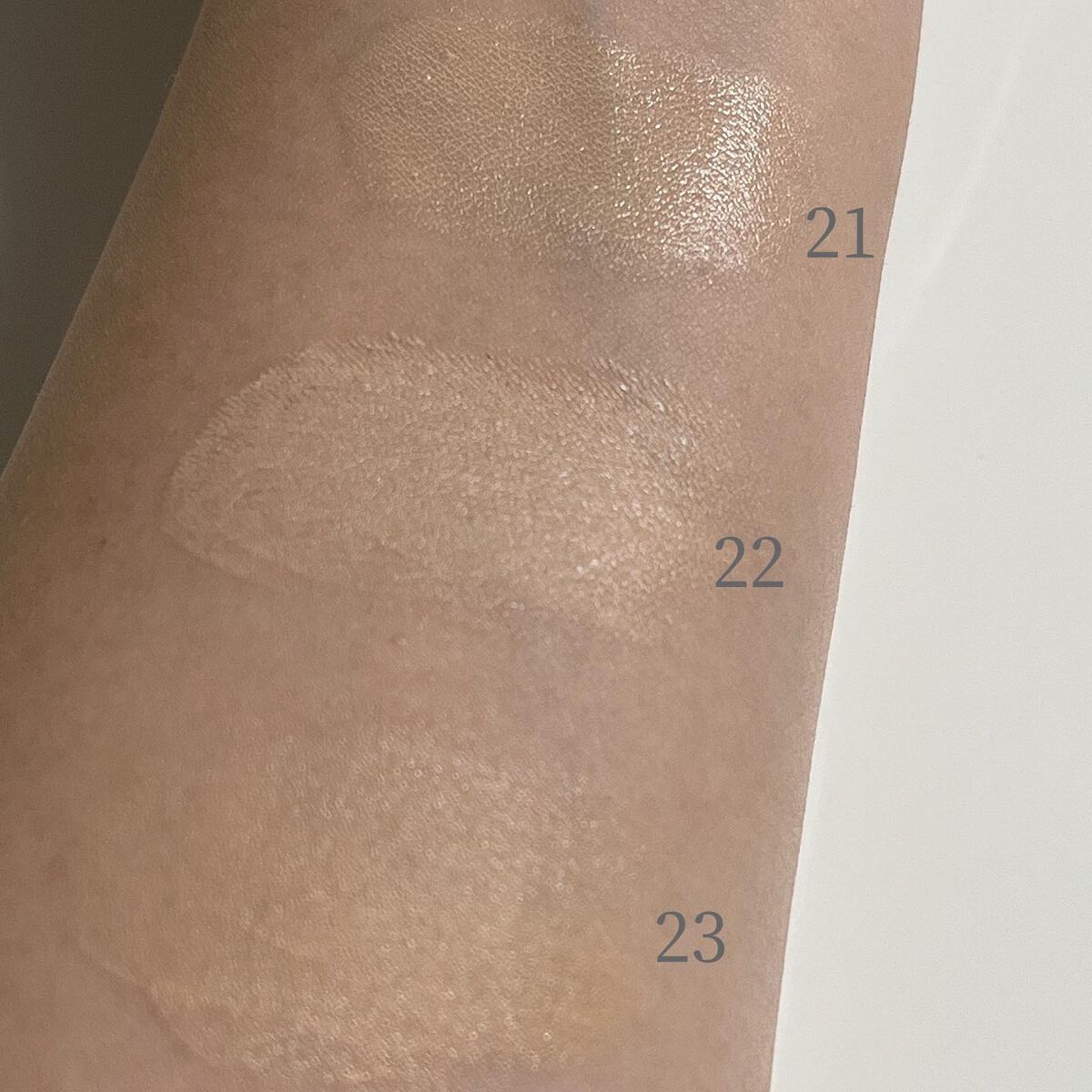 - <23 ナチュラルベージュ 本体> 水、酸化チタン (CI 77891)、フェニルトリメチコン、イソノナン酸イソノニル、シクロペンタシロキサン、BG、グリセリン、メトキシケイヒ酸エチルヘキシル、セチルPEG/PPG-10/1ジメチコン、酸化亜鉛 (CI 77947)、トリ(カプリル酸/カプリン酸)グリセリル、ナイアシンアミド、シクロヘキサシロキサン、1,2-ヘキサンジオール、ジステアルジモニウムヘクトライト、ビス(PEG/PPG-14/14)ジメチコン、酸化鉄 (CI 77492)、硫酸Mg、ステアリン酸イヌリン、トリ(ベヘン酸/イソステアリン酸/エイコサン二酸)グリセリル、(アクリレーツ/メタクリル酸ポリトリメチルシロキシ)コポリマー、ジイソステアリン酸ポリグリセリル-2、合成フルオロフロゴパイト、水酸化Al、酸化鉄 (CI 77491)、ステアリン酸、トリエトキシカプリリルシラン、(セテアリルジメチコン/ビニルジメチコン)クロスポリマー、酸化鉄 (CI 77499)、エチルヘキシルグリセリン、ツボクサエキス、カミツレ花、カプリル酸グリセリル、ジメチコン、香料、アデノシン、EDTA-2Na、マンニトール、カプリリルグリコール、合成ヒト遺伝子組換オリゴペプチド-1 <21 ライトベージュ 本体> 水、酸化チタン、フェニルトリメチコン、イソノナン酸イソノニル、シクロペンタシロキサン、BG、グリセリン、メトキシケイヒ酸エチルヘキシル、セチルPEG/PPG-10/1ジメチコン、酸化亜鉛、トリ(カプリル酸/カプリン酸)グリセリル、ナイアシンアミド、シクロヘキサシロキサン、1,2-ヘキサンジオール、ジステアルジモニウムヘクトライト、合成フルオロフロゴパイト、ビス(PEG/PPG-14/14)ジメチコン、硫酸Mg、ステアリン酸イヌリン、トリ(ベヘン酸/イソステアリン酸/エイコサン二酸)グリセリル、酸化鉄、(アクリレーツ/メタクリル酸ポリトリメチルシロキシ)コポリマー、ジイソステアリン酸ポリグリセリル-2、水酸化Al、ステアリン酸、(セテアリルジメチコン/ビニルジメチコン)クロスポリマー、トリエトキシカプリリルシラン、エチルヘキシルグリセリン、ツボクサエキス、カミツレ花、カプリル酸グリセリル、ジメチコン、香料、アデノシン、EDTA-2Na、マンニトール、カプリリルグリコール、合成ヒト遺伝子組換オリゴペプチド-1 <22 ミディアムベージュ 本体> 水、酸化チタン、フェニルトリメチコン、イソノナン酸イソノニル、BG、グリセリン、メトキシケイヒ酸エチルヘキシル、シクロペンタシロキサン、セチルPEG/PPG-10/1ジメチコン、酸化亜鉛、トリ(カプリル酸/カプリン酸)グリセリル、ナイアシンアミド、シクロヘキサシロキサン、1,2-ヘキサンジオール、ジステアルジモニウムヘクトライト、イソドデカン、合成フルオロフロゴパイト、ビス(PEG/PPG-14/14)ジメチコン、(アクリレーツ/メタクリル酸ポリトリメチルシロキシ)コポリマー、ステアリン酸イヌリン、硫酸Mg、酸化鉄、トリ(ベヘン酸/イソステアリン酸/エイコサン二酸)グリセリル、ジイソステアリン酸ポリグリセリル-2、カプリル酸グリセリル、水酸化Al、ステアリン酸、ジメチコン、(セテアリルジメチコン/ビニルジメチコン)クロスポリマー、トリエトキシカプリリルシラン、エチルヘキシルグリセリン、ツボクサエキス、カミツレ花、香料、アデノシン、EDTA-2Na、マンニトール、カプリリルグリコール、合成ヒト遺伝子組換オリゴペプチド-1