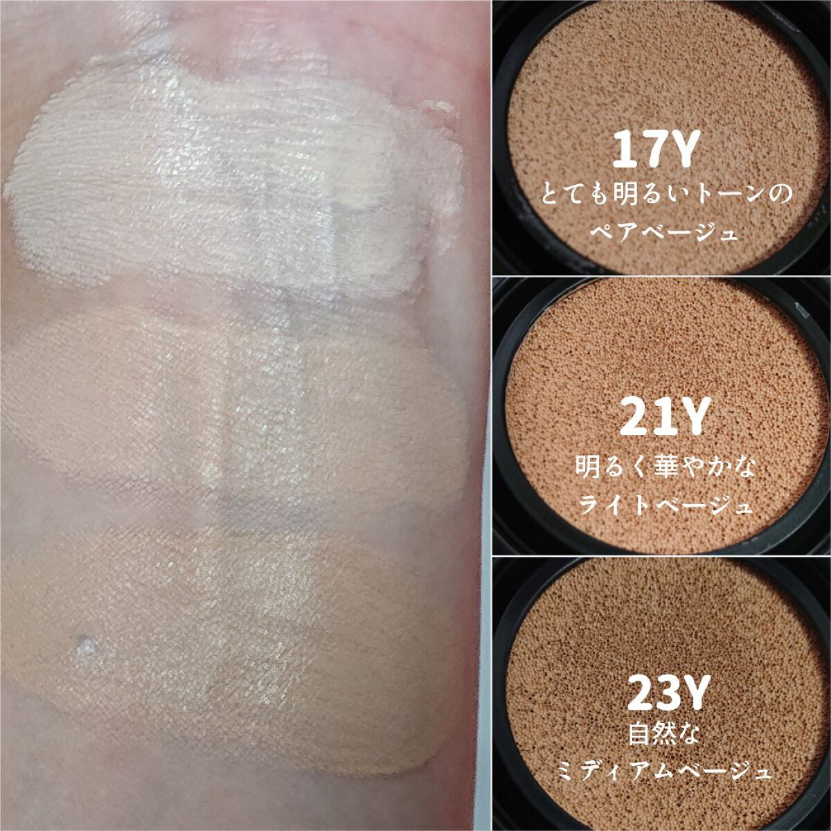 - SPF50+、PA+++ 絶妙バランスの水分とオイルベースが光に反射し、透明感のある健康的な印象の肌ツヤを演出。 高分子フィルムフォーマピグメントが薄くレイヤーリングするほどカバー力を高め、気になる部分をカバー メイク時に重ね塗りしても厚塗り感少なく浮きにくいデイリーお直しクッション