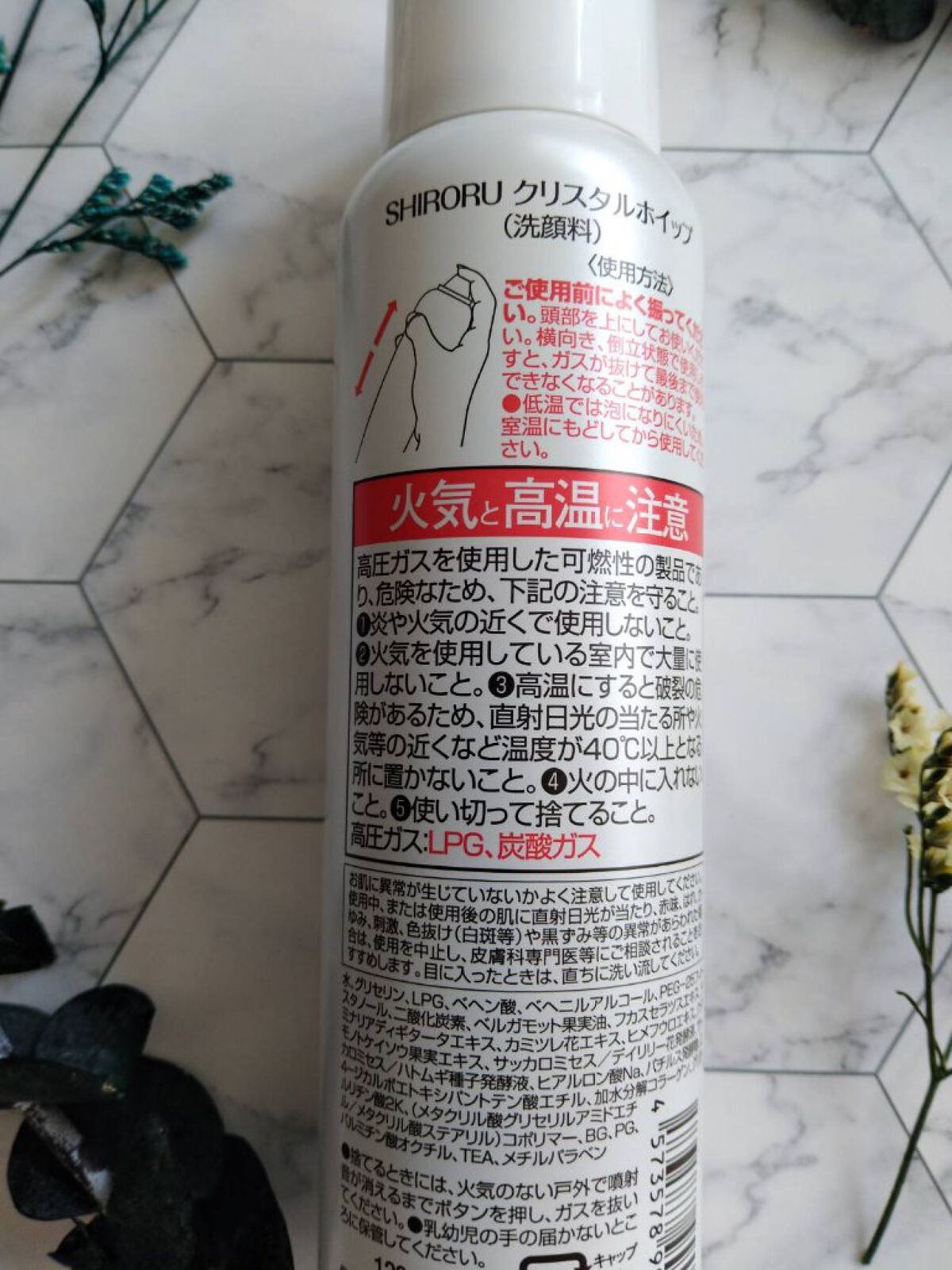 - <クリスタルホイップ> 水、グリセリン、LPG、ベヘン酸、ベヘニルアルコール、PEG−25フィトスタノール、ヒアルロン酸Na、加水分解コラーゲン、グリチルリチン酸2K、レモングラス葉/茎エキス、エーデルワイスカルス培養エキス、カミツレ花エキス、サッカロミセス/ハトムギ種子発酵液、二酸化炭素、ベルガモット果実油、フカスセラツスエキス、ラミナリアディギタータエキス、ヒメフウロエキス、クダモノトケイソウ果実エキス、サッカロミセス/デイリリー花発酵液、バチルス発酵物、2,4−ジカルボエトキシパントテン酸エチル、(メタクリル酸グリセリルアミドエチル/メタクリル酸ステアリル)コポリマー、BG、PG、パルミチン酸エチルヘキシル、TEA、メチルパラベン <クリスタルホイップ【旧】> 水、グリセリン、LPG、ベヘン酸、ベヘニルアルコール、PEG-25フィトスタノール、二酸化炭素、ベルガモット果実油、フカスセラツスエキス、ラミナリアディギタータエキス、カミツレ花エキス、ヒメフウロエキス、クダモノトケイソウ果実エキス、サッカロミセス/デイリリー花発酵液、サッカロミセス/ハトムギ種子発酵液、ヒアルロン酸Na、バチルス発酵物、2,4-ジカルボエトキシパントテン酸エチル、加水分解コラーゲン、グリチルリチン酸2K、(メタクリル酸グリセリルアミドエチル/メタクリル酸ステアリル)コポリマー、BG、PG、パルミチン酸エチルヘキシル、TEA、メチルパラベン <120g> 水、グリセリン、LPG、ベヘン酸、ベヘニルアルコール、PEG−25フィトスタノール、ヒアルロン酸Na、加水分解コラーゲン、グリチルリチン酸2K、レモングラス葉/茎エキス、エーデルワイスカルス培養エキス、カミツレ花エキス、サッカロミセス/ハトムギ種子発酵液、二酸化炭素、ベルガモット果実油、フカスセラツスエキス、ラミナリアディギタータエキス、ヒメフウロエキス、クダモノトケイソウ果実エキス、サッカロミセス/デイリリー花発酵液、バチルス発酵物、2,4−ジカルボエトキシパントテン酸エチル、(メタクリル酸グリセリルアミドエチル/メタクリル酸ステアリル)コポリマー、BG、PG、パルミチン酸エチルヘキシル、TEA、メチルパラベン <120g(ディズニー限定デザイン)> 水、グリセリン、LPG、ベヘン酸、ベヘニルアルコール、PEG−25フィトスタノール、ヒアルロン酸Na、加水分解コラーゲン、グリチルリチン酸2K、レモングラス葉/茎エキス、エーデルワイスカルス培養エキス、カミツレ花エキス、サッカロミセス/ハトムギ種子発酵液、二酸化炭素、ベルガモット果実油、フカスセラツスエキス、ラミナリアディギタータエキス、ヒメフウロエキス、クダモノトケイソウ果実エキス、サッカロミセス/デイリリー花発酵液、バチルス発酵物、2,4−ジカルボエトキシパントテン酸エチル、(メタクリル酸グリセリルアミドエチル/メタクリル酸ステアリル)コポリマー、BG、PG、パルミチン酸エチルヘキシル、TEA、メチルパラベン