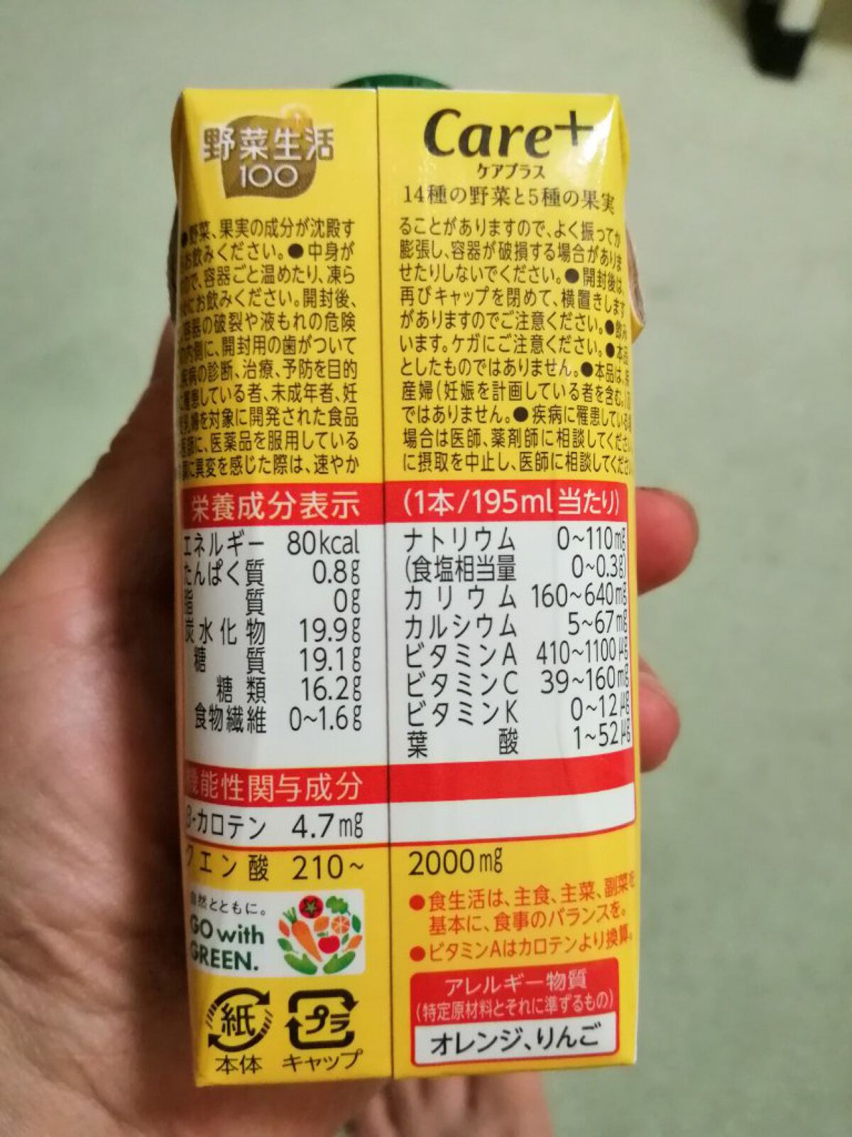 スッキリな飲み心地でした!🍋 野菜も果物も色々と入っているのだけど、味はそこまで酸っぱくないレモンって感じです🤔 甘くもないので、スッキリ感求めてる人向け! 野菜ジュース感はあまりないです🥤 他の野菜生活シリーズのほうが美味しい😂
