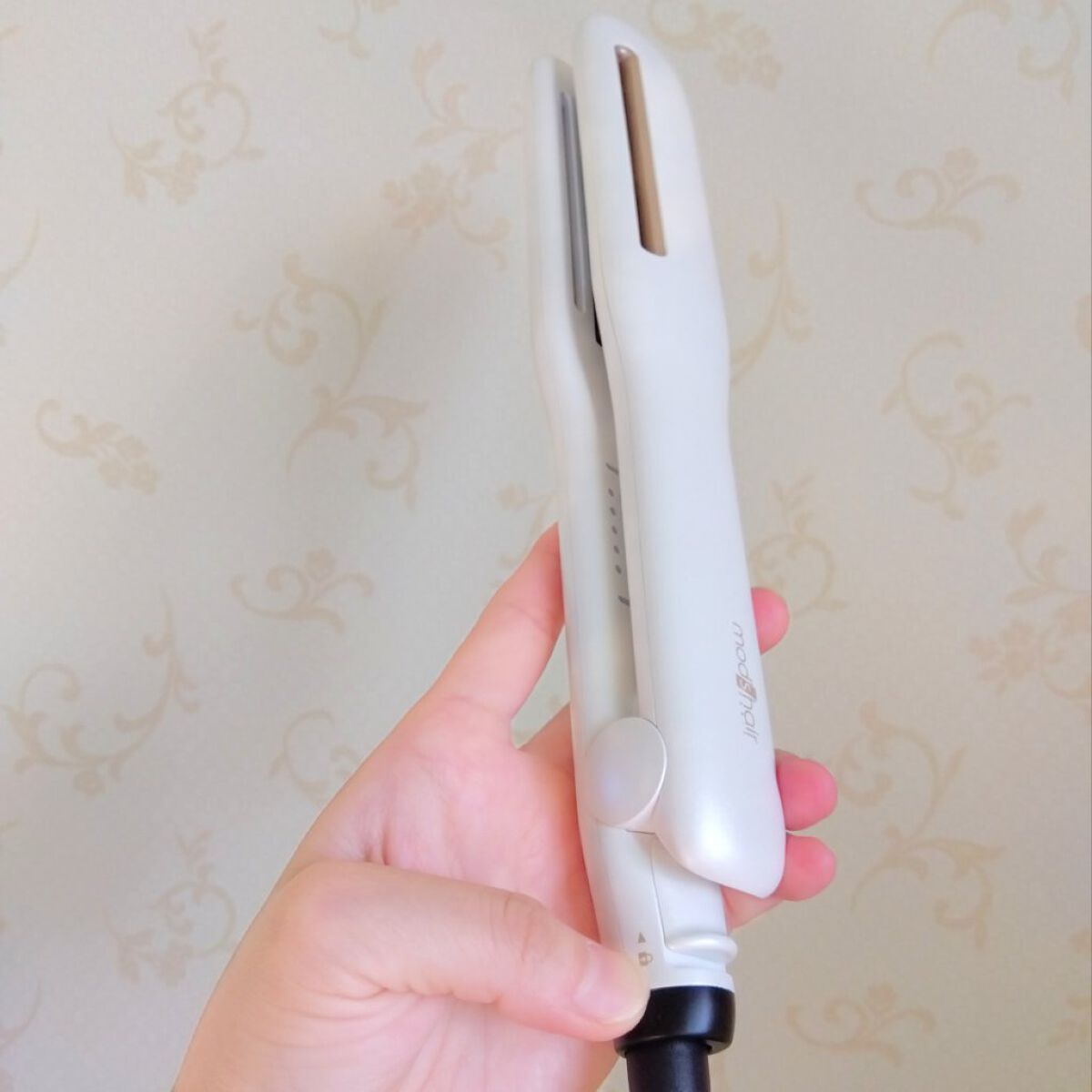 手のひらサイズのヘアアイロン! 持ち運びに便利!前髪やおくれ毛のセットにも! 温度も190°Cぐらいがちょうどいいと思いました!収納時のロック機能もありがたいし 約30分後に自動で電源が切れる安心機能付きだから旅行のときにもぴったり🫶