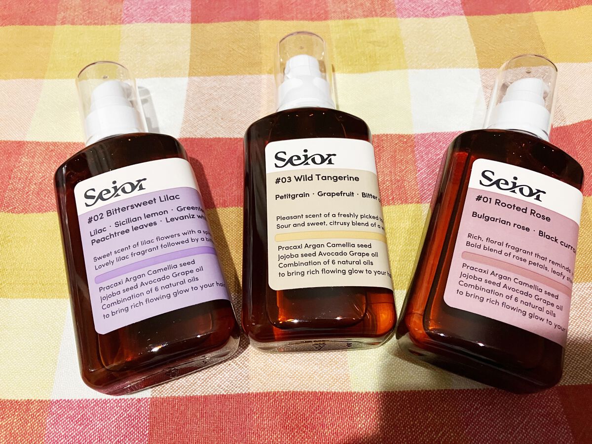 プラカシーオイルアマゾンで採れた天然のヘア栄養剤で、ベヘニック酸成分が髪を保護。 乾燥した髪・濡れた髪に素早くツヤを与え、柔らかくしっとりとした髪を保ちます。 軽い手触りのべたつかないヘアオイル。サラッとしたつけ心地で重くならないのでオールシーズン使いやすいです。 しっかり香るタイプで香水のように香りの変化も楽しめます。 Wild Tangerineは柑橘系の香りが好きな人なら間違いない香り🍊🧡 Rooted Roseはバラの青さも感じる、リアルにバラ園にいるような豊かな香り🌹 Bittersweet Lilacはとっても上品な香り。ライラック+柑橘類なので甘すぎなくて使いやすい! 私はこの香りが一番お気に入りです💜