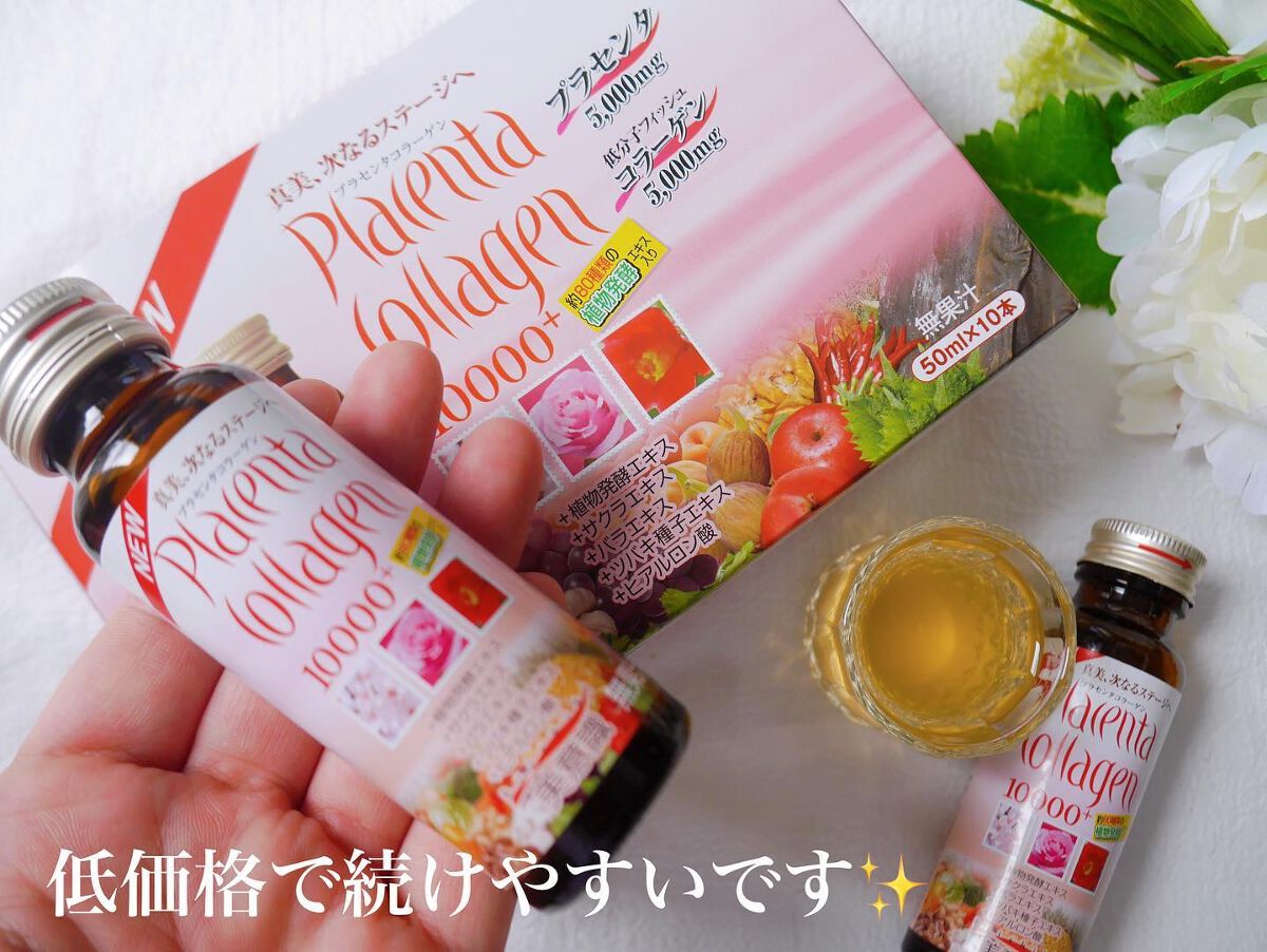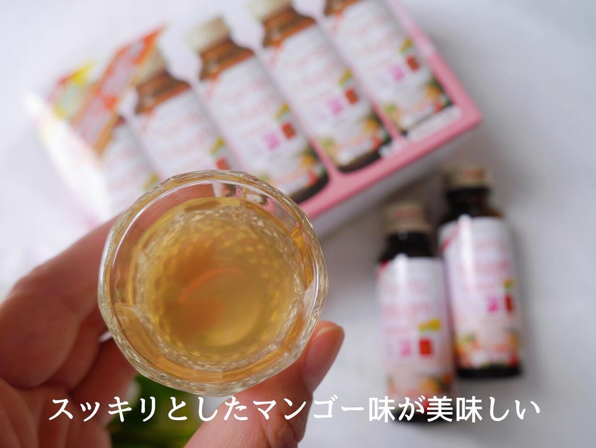 プラセンタとコラーゲンを一度に摂りたい方におすすめのドリンク。植物発酵エキスやヒアルロン酸などの美容成分をプラスし、プラセンタ特有のにおいは抑え飲みやすく仕上げました。 楽天ランキング1位の商品でとても気になってました🤍 ほのかなマンゴーの香り・味でさっぱりとした味でとても飲みやすいです。 10本毎日飲んでみて、マスクをして外出した日に必ずできるニキビができませんでした🤭♡ 凄すぎて感動🥹