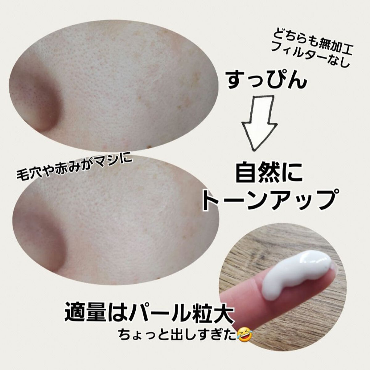 6 in 1のスキンケア感覚! 化粧水、美容液、乳液、クリーム、UVカット、化粧下地の6つの機能が1つに! ノンケミカル・美容液成分82%・アレルギーテスト済み・皮膚科医によるパッチテスト済み・肌色補正 ノンケミでこの塗り心地、すごい! スキンケアUV下地の方はノンケミだけど塗り心地がなめらかすぎて、何も言われなければ紫外線吸収剤を使ってると思ってしまいそう!