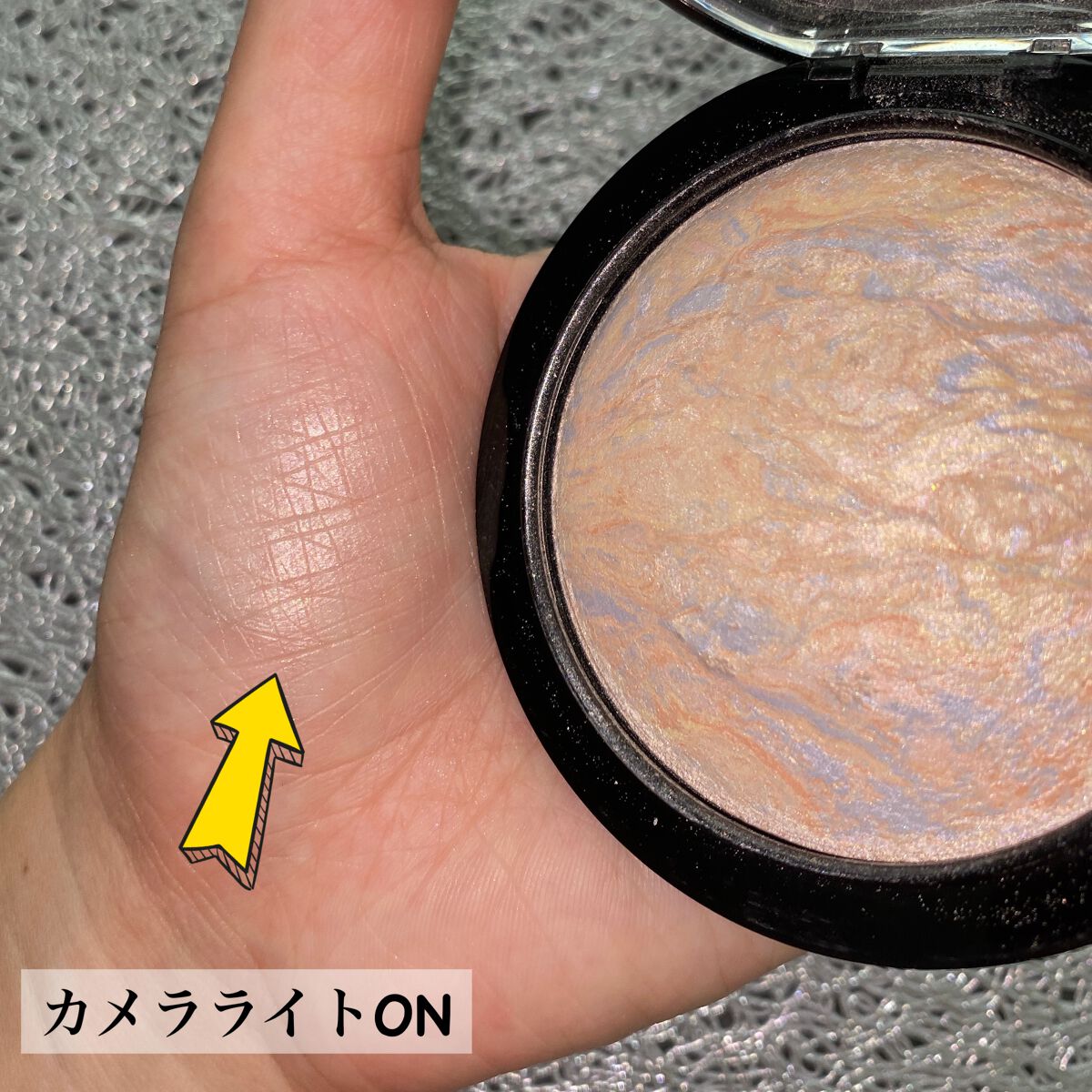 【やっぱりすごかった😳大・大・大人気のハイライトGETしました💓🙌】ライトスカペードは、M·A·Cのフェイスパウダーミネラライズスキンフィニッシュシリーズの中でも透明感のあるハイライトとして人気のアイテム✨ブルー・ピンク・ベージュのマーブル模...