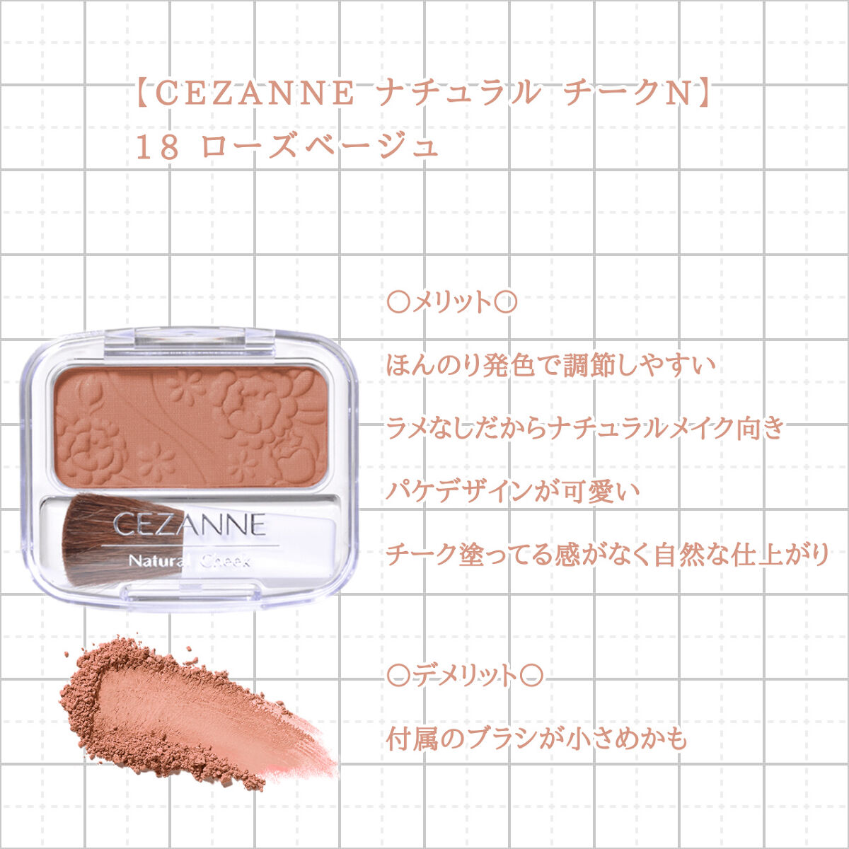 【イエベ秋必見!ナチュラルチーク♥️】・CEZANNE-ナチュラルチークN18ローズベージュ・396yen☑️高発色で自然に仕上がる☑️ミネラル成分90%配合⭕️イエベ秋(プロ診断です)にピッタリのお色!オフィスメイクに重宝してる。⭕️パウダ...
