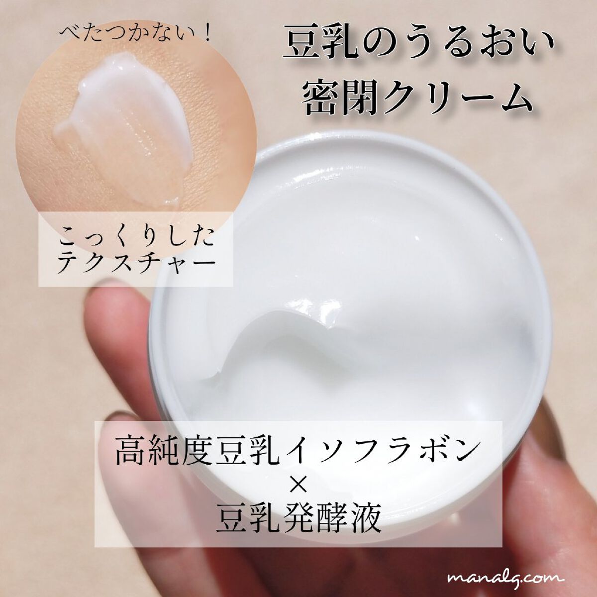 - リニューアル発売 豆乳イソフラボン*2と豆乳発酵液*2を配合。お肌のうるおいを守り、なめらかな素肌に導くクリームです。 パック処方で、ぐんぐん浸透*6!さらりとしているので毎日使いやすく、乾燥する季節の強い味方です。