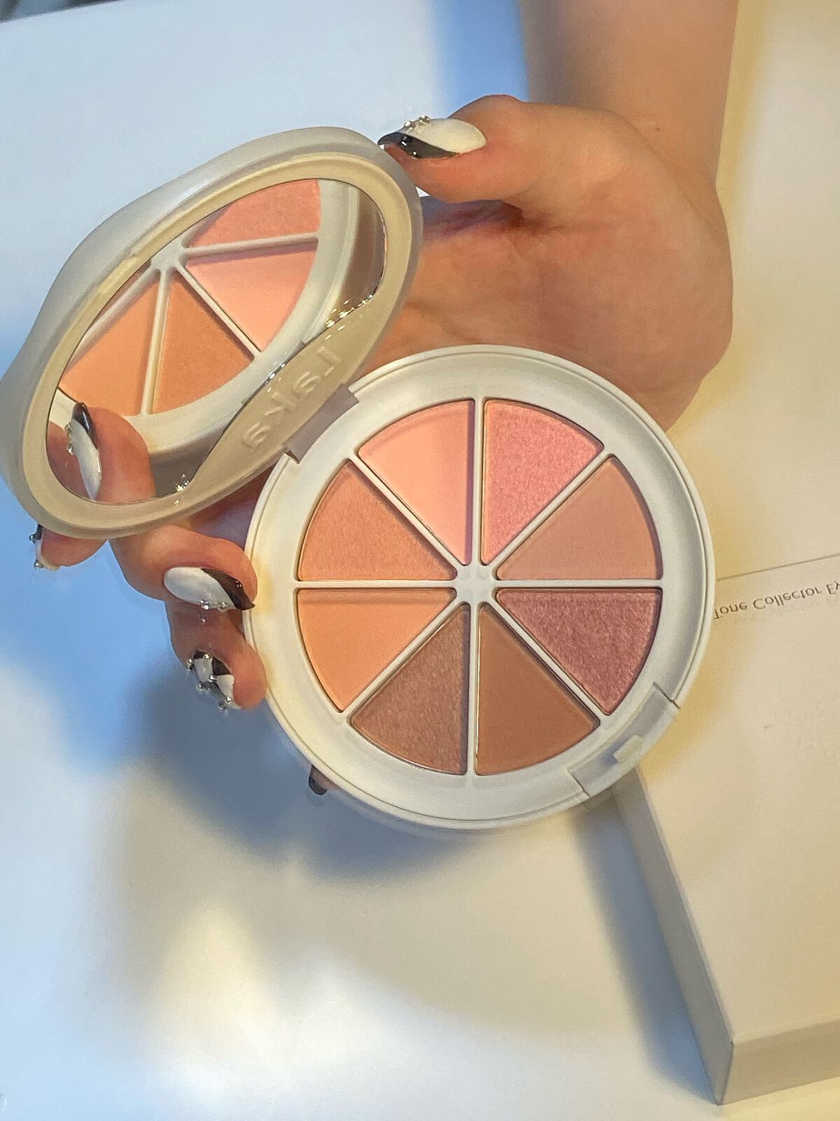 全体的にぼやけやすい ニュアンスカラーを使ってるけど マスカラをしっかり塗って さらに、下まつげの間を赤みブラウンで埋めることで奥行きのあるデカ目が作れます♡ チークは中顔面の余白が気になる方 是非鼻先にも塗ってみて欲しい!!! 不思議なくらい縮まって見えます🙊🤍 個人的にハイライトがかなりおすすめで、 トーンアップはしないタイプで しっかり輝くのに見た目ナチュラル。 絶妙な光り方なので是非チェックしてみてください💫