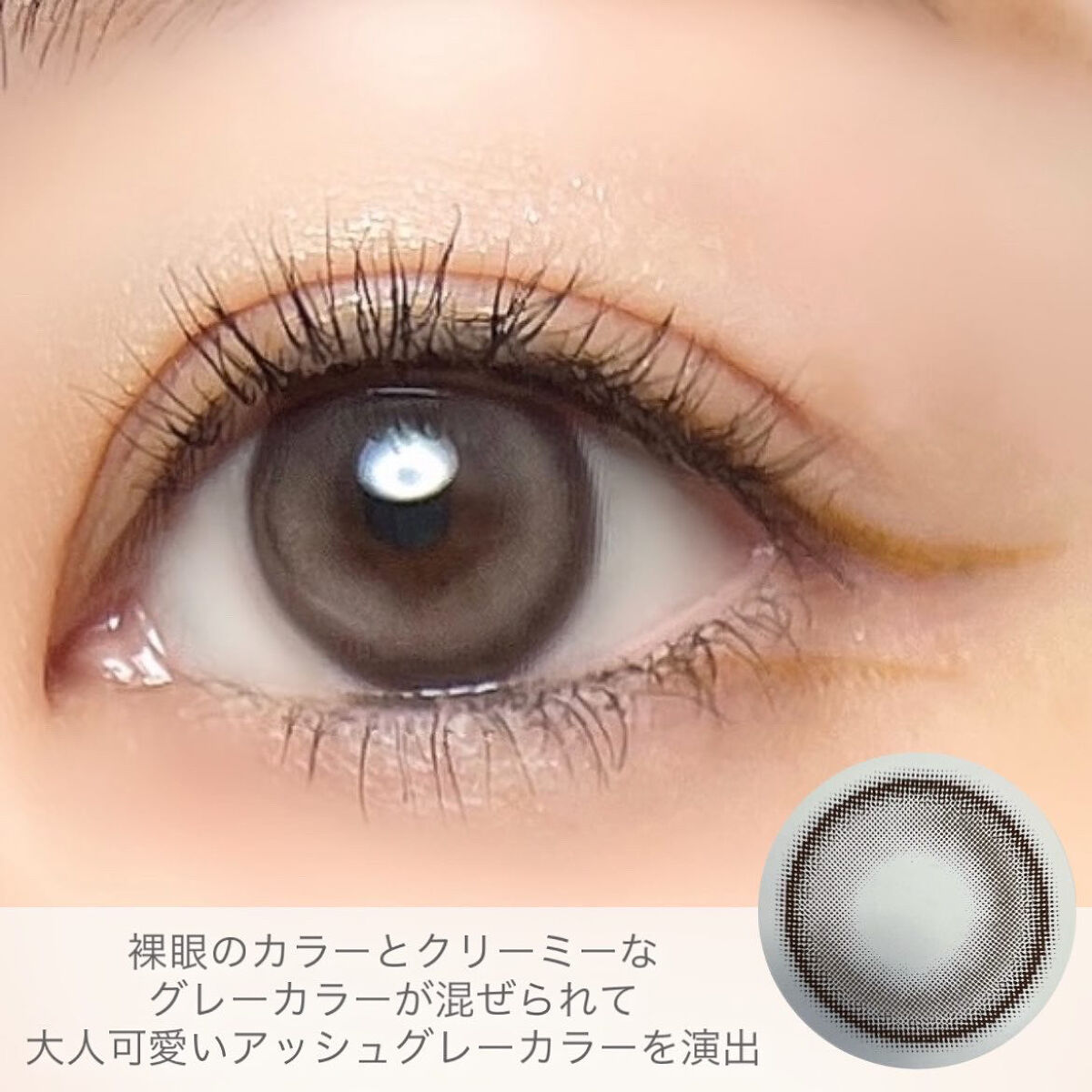 個性的なカラーからナチュラルなものまで幅広いラインナップで見てて楽しかったです! 透明感のあるブルーグレーが瞳に溶け込み、リアルなグレーアイに見せるレンズ。 透け感のある色味だけどしっかり発色するナチュラルハーフ系カラコン。着色直径も小さめなので着せ替え感があってかわいい。 N's COLLECTIONはレンズのつけ心地もすごく良くて他のカラーもとっても可愛いです!