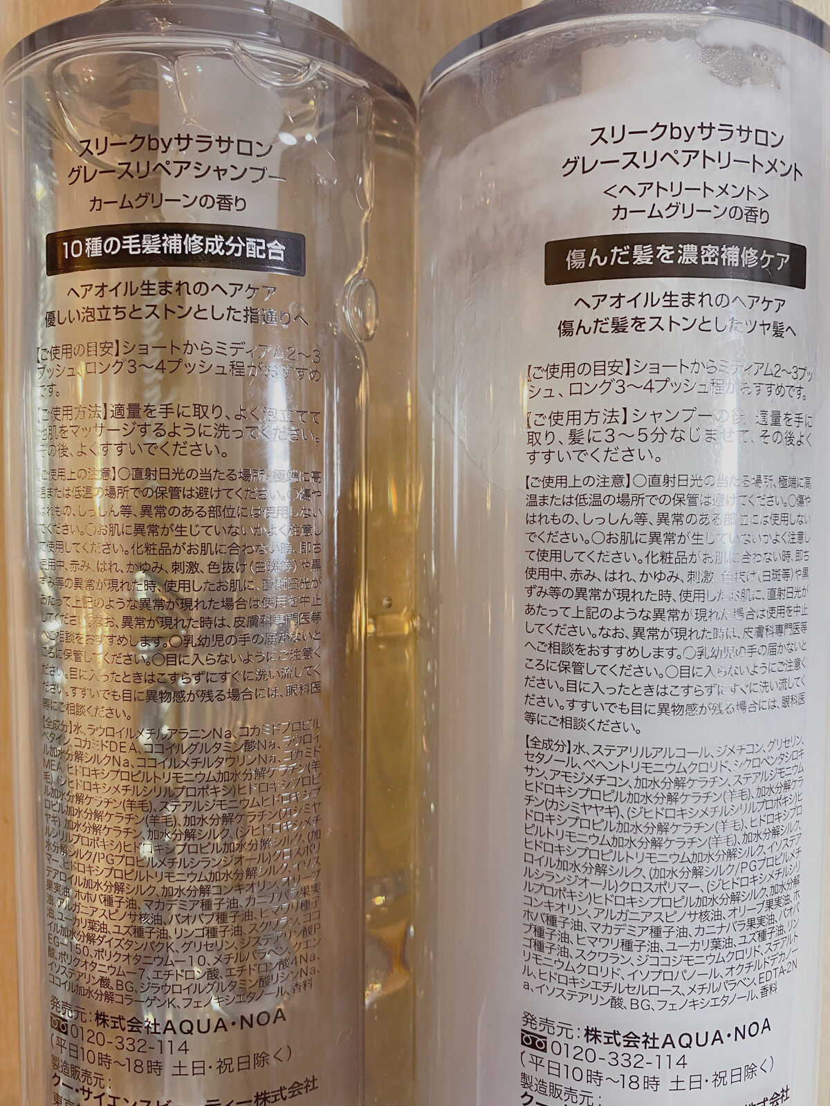 商品詳細情報スリーク by サラサロン グレースリペアシャンプー/トリートメント