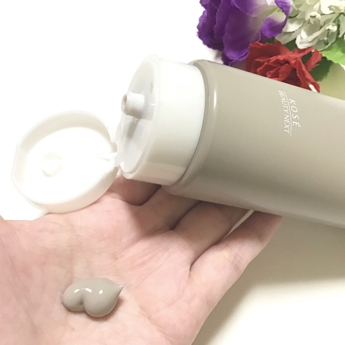 コーセー独自開発のトリートメントシールド成分により、高いフィット力・負担感のなさ・マスク時の化粧もちを叶え、軽やかなタッチで心地く、マスクにもつきにくいという特徴の商品となっています。 SPF50+/PA++++と紫外線防止効果もある点も魅力的に感じました。 手に取り出してみるとみずみずしいテクスチャーのクリームで、スーッと心地のよくのばしていくことのできる伸びの良さを感じました。 しっとりとした負担感のない付け心地で、ある程度伸ばすと、ピタッと肌に密着するようにして馴染み、毛穴や色ムラも目立たずにナチュラルにカバーしてくれ、ツヤ肌を演出してくれる仕上がりになるところも気に入りました。