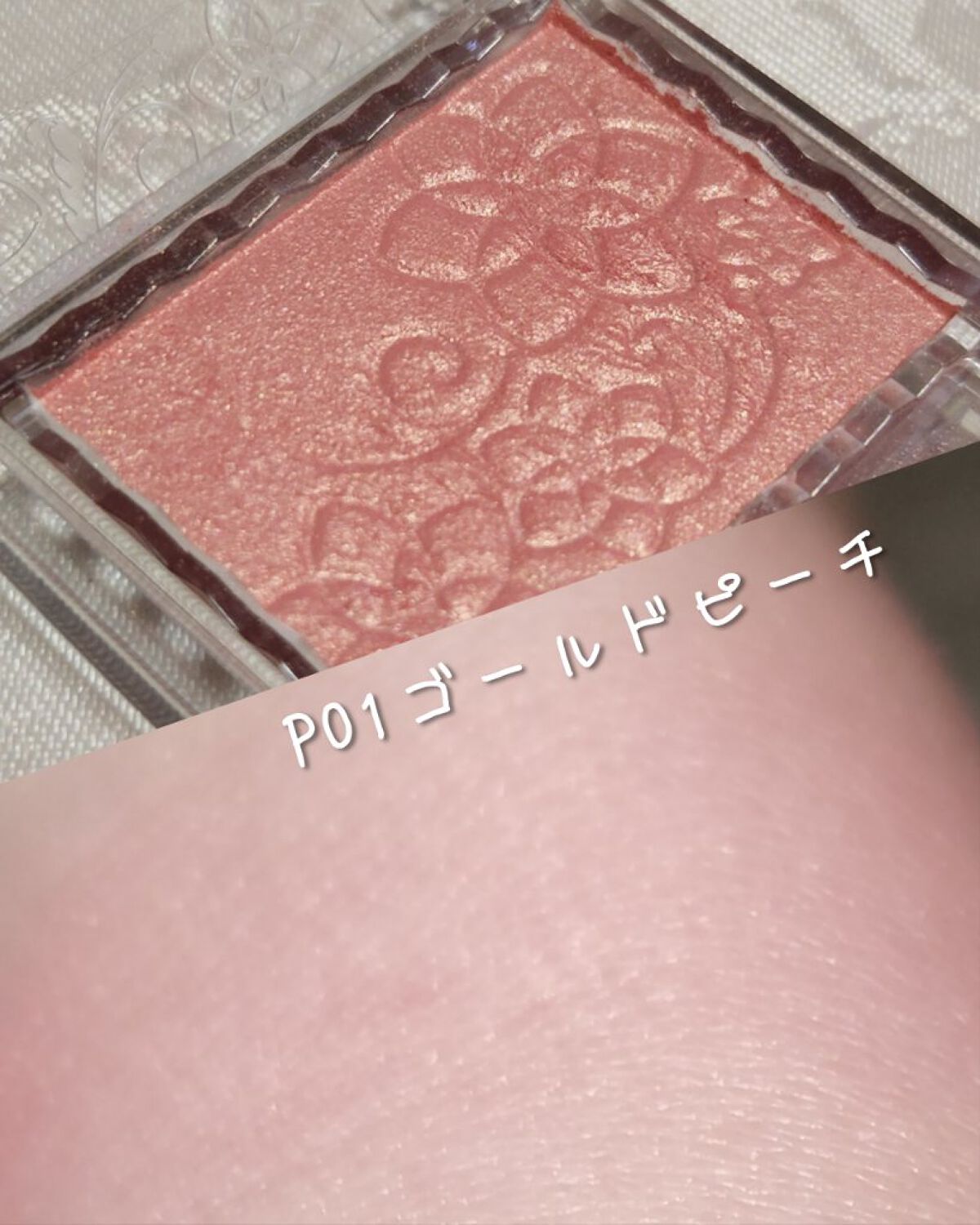 ハイライト効果もあるくらい艶感が綺麗で 夕方、メイクが崩れてきても 自然な艶感でメイク崩れもカバーできる✨ ゴールドパールがたっぷりで 多幸感あふれる🥰🥰 偏光パールのようにも感じで いろんな色に輝いて一味違うピンクです💓 NARSのブラッシュ4013Nに似ている気がして 購入しました😊 660円でこれは本当にすごい👏👏👏