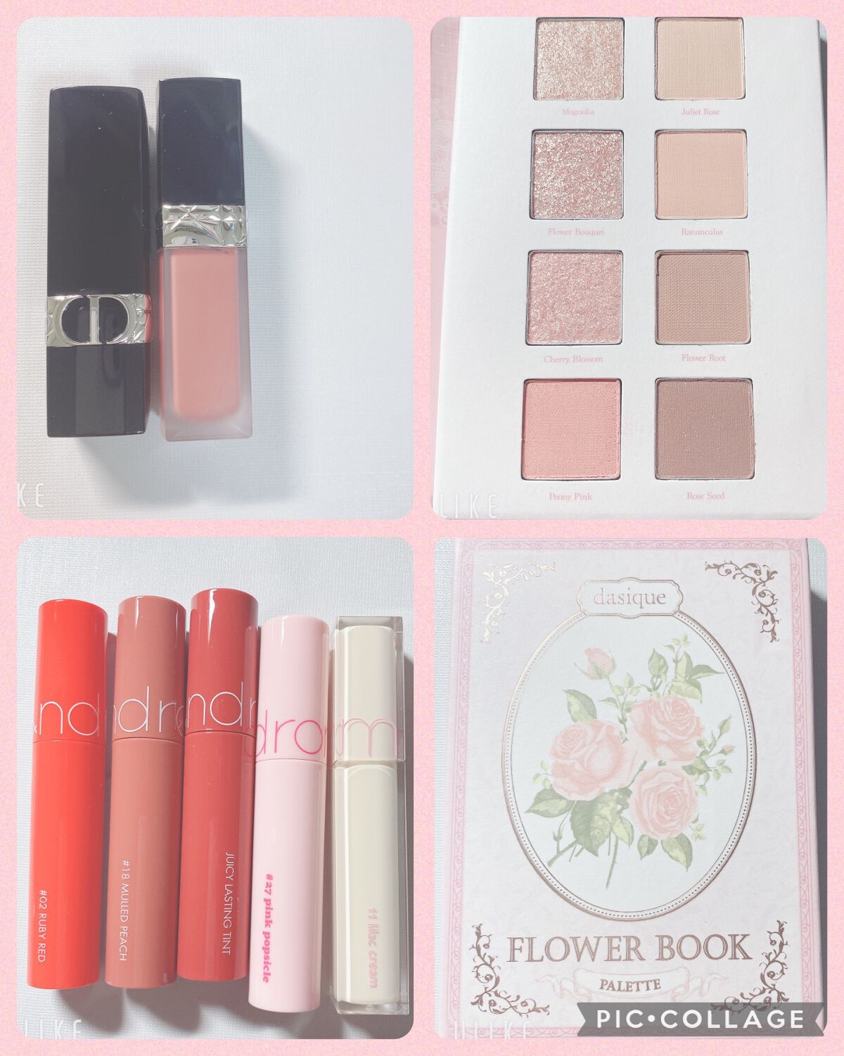 今回使用したコスメはBLEND BERRY オーラクリエイション 102 ザクロ&シュガリーピンク、キャンメイク クリームチーク マットタイプ M02 チャイローズ、B IDOL むっちリップ 04 ほろよいピンク、ロムアンドのリップです🌱 今回は、普段とはわりと全てを真逆な感じにメイクしてみたのがポイントです🫶🏻 アイシャドウをあえての2色にしてみたり リップはマットリップをメインにしてあえてロムアンドのライラックカラーのリップを上に重ねてみました🥀 二重幅に使ったカラーがわりと発色がよかったので 2色だけでもかなりいい!と思えるアイメイクができました⸜🙌🏻⸝ チークもとてもよかったです🦋𓂃 𓈒𓏸