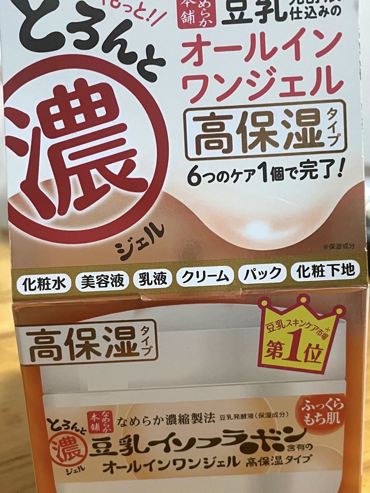 - これひとつでなめらかなふっくらもち肌に導く1個で6役のオールインワンジェル これひとつでスキンケアが完了! 豆乳発酵液*1仕込み!時短しながら大満足のうるおいでふっくらもち肌 こだわりの3つの大豆由来成分を贅沢に配合。 時短を叶えるオールインワンジェルでありながら、高い浸透力と保湿力を体感していただけます。 〔 ①豆乳発酵液*1仕込みのオールインワンジェル 〕 『なめらか本舗』こだわりの豆乳発酵液*1をはじめ、ダイズ種子エキス*1、ダイズタンパク*1を贅沢に配合したジェルを細かなメッシュで絞り出し、その後熟成。 肌あたりなめらかな濃いジェルがふっくらもち肌に導きます。 〔 ②お肌のうるおいを守ります 〕 お肌の上でとろけるようになじみ、みずみずしく変化するジェルなので、お肌の奥*2までぐんぐん浸透します。 さらにお肌に膜を張ってうるおいを閉じ込めます。とろんと濃い形態記憶ジェル。 """"とろんと濃い形態記憶ジェル"""" 豆乳ににがりを加えると固まるのは、イオンの力のおかげ。とろんと濃ジェルのとろんと感も、イオンの力を利用しています。 〔 ③洗顔後これひとつでOK!忙しい朝にも時短スキンケア 〕 """"化粧水・美容液・乳液・クリーム・パック・化粧下地"""" の6役がこれひとつでOK。忙しい朝にぴったりです。 *1保湿成分 *2角層