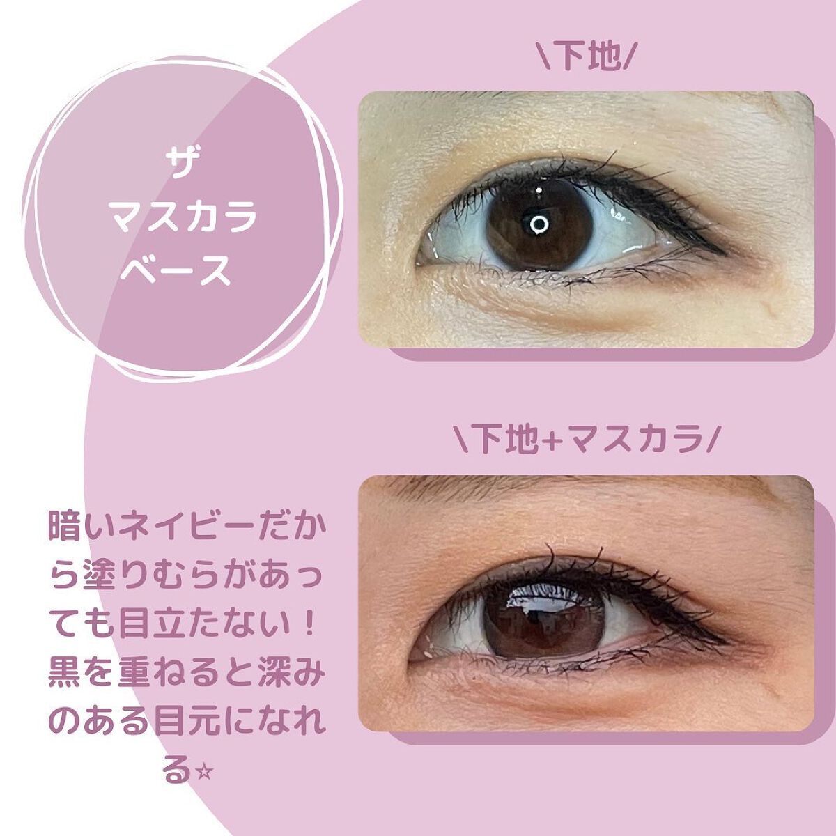 カールも、ボリュームも、キープも叶う! ダマにならずにセパレート&カールアップしたまつ毛に仕上げます。 全然ダマにならないので仕上がりが凄〜く綺麗⭐︎⭐︎⭐︎ 湿気の多い日×マスクの日でも長時間上向きカールをキープしてくれました◎ こだわりのシャドーネイビーをベースの色に採用しているのも特徴!その上にマスカラを重ねることで、黒さにより深みが増します。