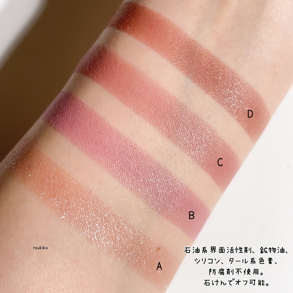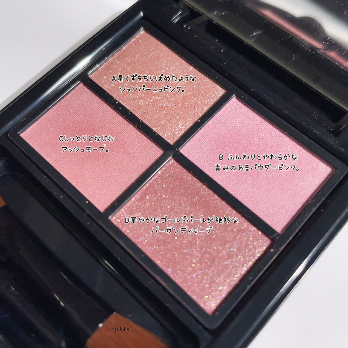 - 敏感肌のまぶたをケアしながら、美しく彩る。ミネラルの色と光を重ねて、メイクするたび自分らしく。 着眼点は「大人のくすみ※1やすい、まぶた」。 敏感になってしまった肌に対し、8種の美容成分※2がうるおいを与えながら丁寧にケアします。 なりたい表情をメイクで叶えながら、健やかな透明感※3のあるまぶたへ。 大人の目もとを上品なツヤと発色で彩る4色アイカラーは、まぶたに吸い付くような質感で、澄んだ眼差しを演出します。 心のままに色を重ねて、なりたい自分を描いて。 ※1 乾燥によるもの ※2 保湿成分:ヒアルロン酸Na、ポリクオタニウム-61、シロキクラゲ多糖体、アシタバ葉/茎エキス、クダモノトケイソウ果実エキス、モモ花エキス 整肌成分:グリチルレチン酸ステアリル、グリチルリチン酸2K ※3 メイクアップ効果による