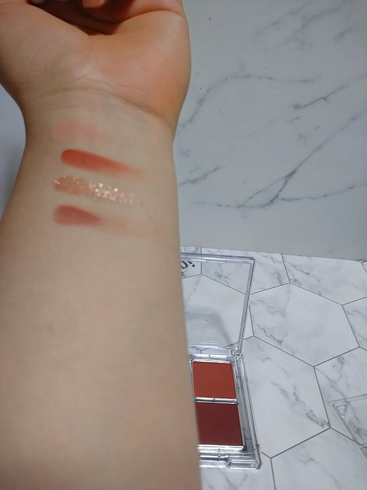 しっとりなめらかなテクスチャーでのせ心地が最高すぎます🍀*゜ ぴたっと密着してくれるので、ヨレは気になりませんでした🥹 肌を明るく見せてくれる、ピーチカラー🐣 ブロンズオレンジとテラコッタで秋めくカラーが良き……🥰