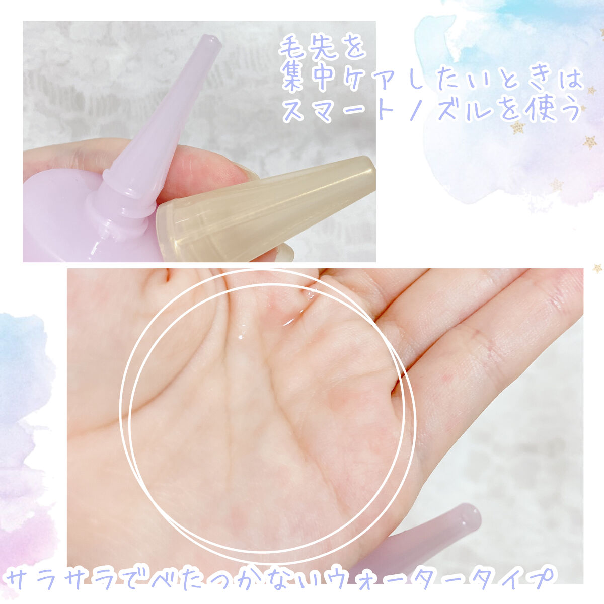 | 乾かすとつるんとした手触りの髪になるのも良き◎ウォーターなので、使用感が軽いところも良いな〜〜と思いました | 詳細を見る | ||