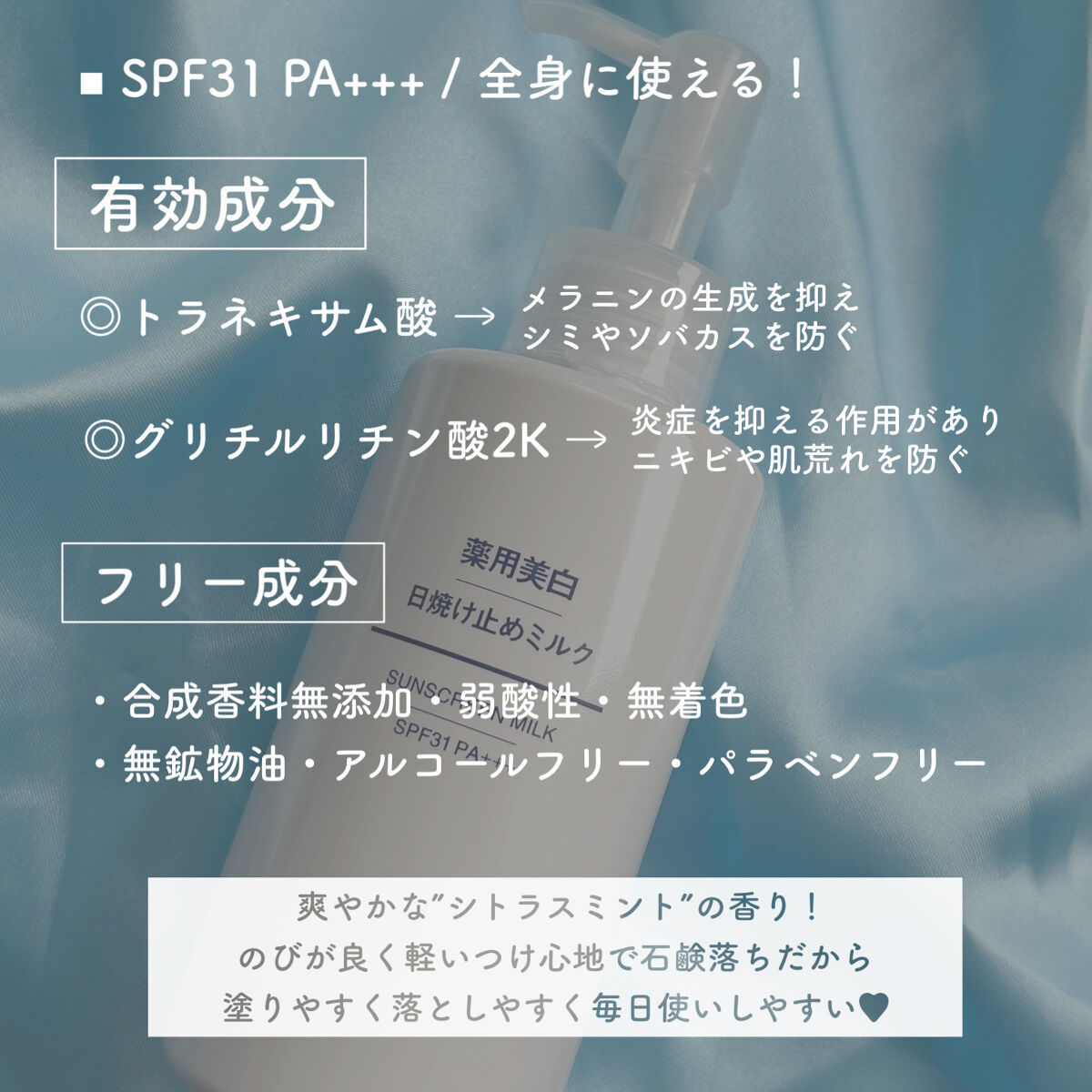 商品詳細情報無印良品 薬用美白 日焼け止めミルク SPF31 PA+++