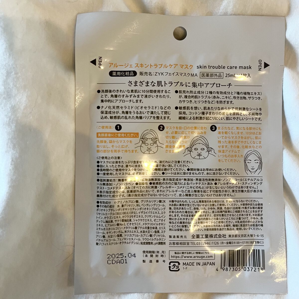 - 医薬部外品 ニキビなどの肌トラブルを防ぐシートマスク。2種類の抗炎症成分に加え、7種類の植物エキス(肌荒れ防止成分)を配合。 敏感肌を考えた肌あたりなめらかなシートマスクが肌をしっかり包み込み、集中的に肌荒れを予防。 *肌荒れの前にすばやく対処すること ●肌荒れをケアする2種類の抗炎症成分(グリチルリチン酸2K、ε-アミノカプロン酸)と7種類の植物エキス(肌荒れ防止成分:カワラヨモギエキス、オウゴンエキス、クリサンテルムインディクム抽出液、ゼニアオイエキス、イザヨイバラエキス、サクラ葉抽出液、シャクヤクエキス)により、気になる肌荒れを防ぎます。 ●敏感肌を考えた、肌あたりなめらかで低刺激なシートを採用。 ●洗顔後のきれいな素肌に10分間使用することで、とろみのある液が角層のすみずみまでいきわたり、肌荒れをしっかり予防します。 ●保湿成分ナノ化天然セラミド(ビオセラミド)などが肌をうるおいで満たし、角層バリアを整えます。 弱酸性/無香料/無着色/鉱物油無添加/表示指定成分*1無添加/界面活性剤無添加/ノンアルコール*2/ノンパラベン 敏感肌の方のご協力によるパッチテスト済み/アレルギーテスト済み/スティンギングテスト済み/コメドテスト済み ※パッチテストとは、お肌に化粧品を貼って、皮膚に対する刺激性の強弱を確認するテストです。 ※アレルギーテストとは、皮膚のアレルギー反応を確認するテストです。 ※スティンギングテストとは、ヒリヒリ感、ピリピリ感といった刺激の有無を確認するテストです。 ※コメドテストとは、コメド(ニキビのもと)のできにくい事を確認するテストです。(すべての方に刺激・アレルギー・コメドが生じないというわけではありません。) *1 表示指定成分とは医薬部外品において、厚生労働省が表示を義務付けた成分です。 *2 エチルアルコール無添加
