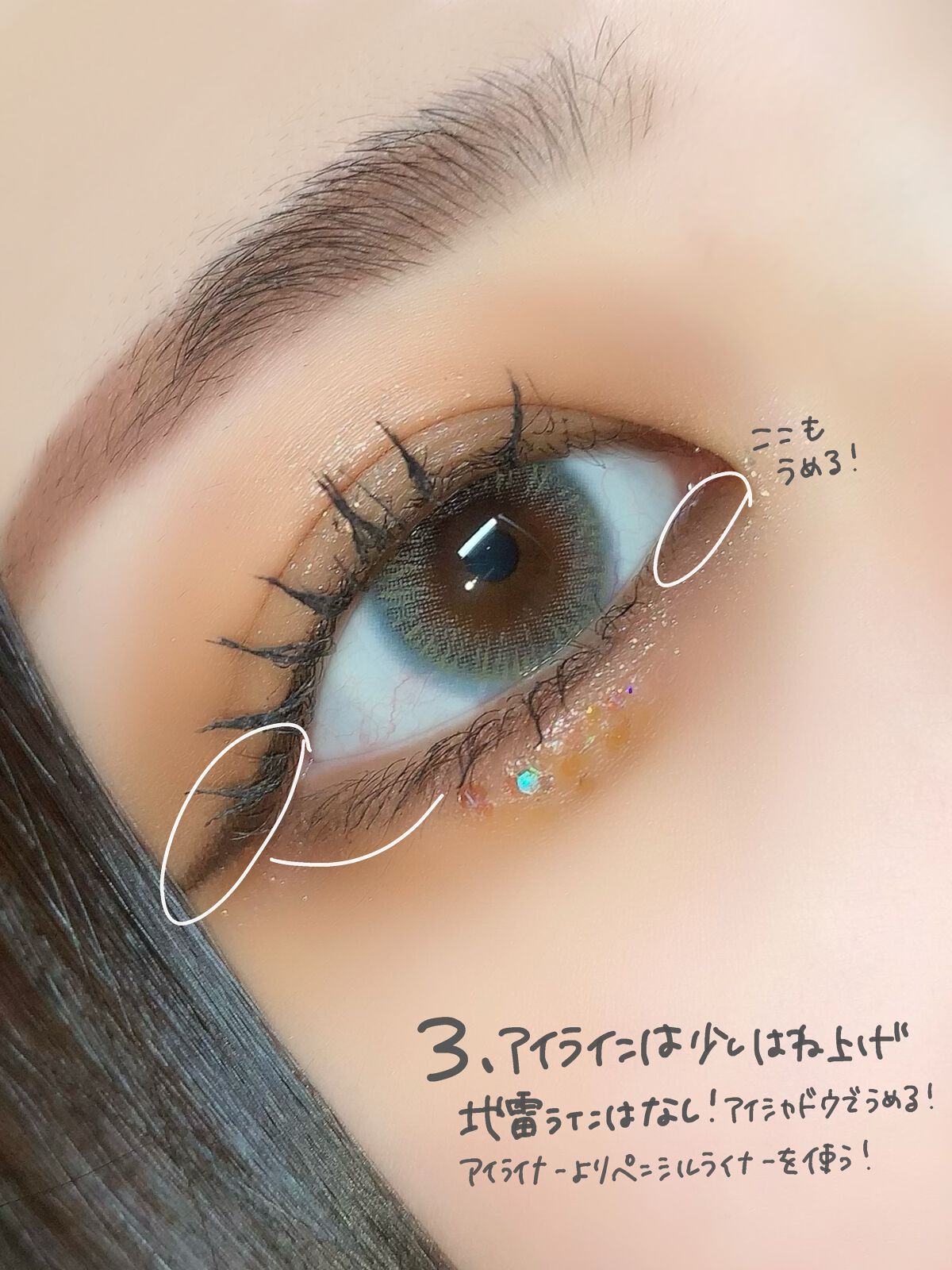 特に眉毛の下と唇の上のハイライトは必須!!これによって一気に立体的でちょっとセクシーな印象に! アイドルメイクというより女優さんのメイクを意識! 目尻と3角ゾーンだけ少し濃いめに重ね塗りすると目元の印象がハッキリ! 涙袋は作りすぎず、黒目の下の際に偏光ラメを! 目元がシンプルな分、チーク入れた方が可愛さも出てよい! 色はガッツリぴんくやオレンジではなくピンクベージュやオレンジピンクがおすすめ! チークとリップのカラーは合わせた方がまとまって見えます🙋♀️