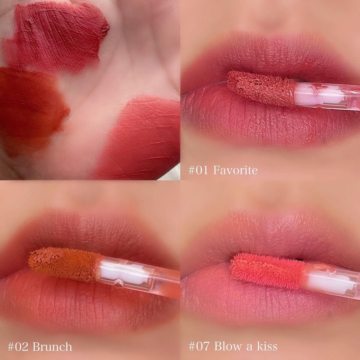 ✼••••✼nuegrayデイリームードマットリキッド✼••••✼ふわふわマットが可愛いリップ🩷軽くて密度のある粒子が塗れば塗るほと薄く広がり唇の表面を滑らかに仕上げてくれるよ!日常生活で使いやすいデイリーエッセンシャルカラー✨スフレのように...