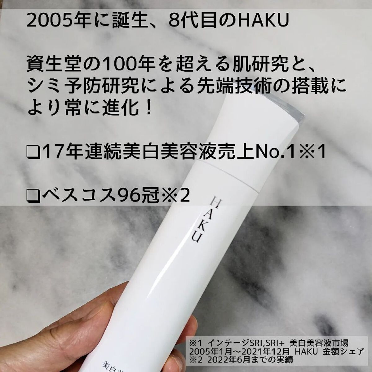美白美容液市場20年連続売上No.1※HAKUが20年分の研究成果を一本に全搭載して2025年2月21日(金)新発売! シミを作らない守りのケアってすごく大事だと思うから、私はHAKUを使っているよ✨ 今回のリニューアルでさらにパワーアップしたHAKUで、美白※ケアをきちんとして透明感のある肌を目指したい…!