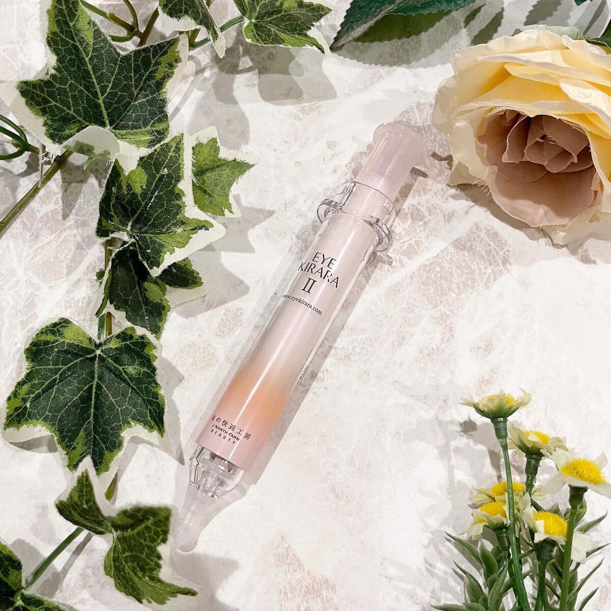 注射器型💉の容器1プッシュで1回分の使用量 半量ずつを両目の下に馴染ませると、ベタつかずしっとりした触り心地になりました😌 ハリとツヤもアップしていて、特に乾燥小じわに効果ありそうな予感💓 朝晩1週間使用したところ、頑固なクマは健在ですが、心なしか目元がトーンアップしてきたような☺️💓 継続使用でより目元に嬉しい効果があるようなので、リピも検討しながら使い切りたいです😊✨