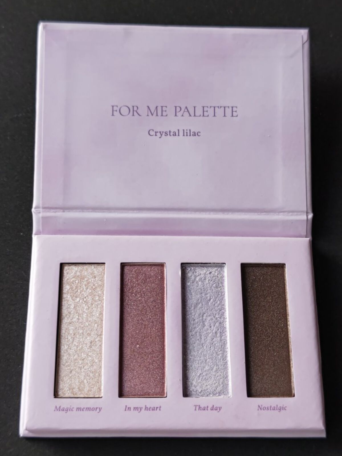 全体をパッと見るとグレージュ系のパレット よくよく見ると肌になじむピンクやモーヴもほんのり感じられる 右2色のラメは淡く儚げな輝き 上段は淡く、柔らかな色出し 右上のピンクラメでさりげない濡れツヤ感が出せる 左上はパール感あり 下段はココア系 ツールで発色をコントロールできるので ナチュラル仕上げにも、しっかりメイクしたい時にも使える ブラシでさらさら塗る➡️肌の自然な影のようになじむ アイシャドウベース+指塗り➡️強く発色する