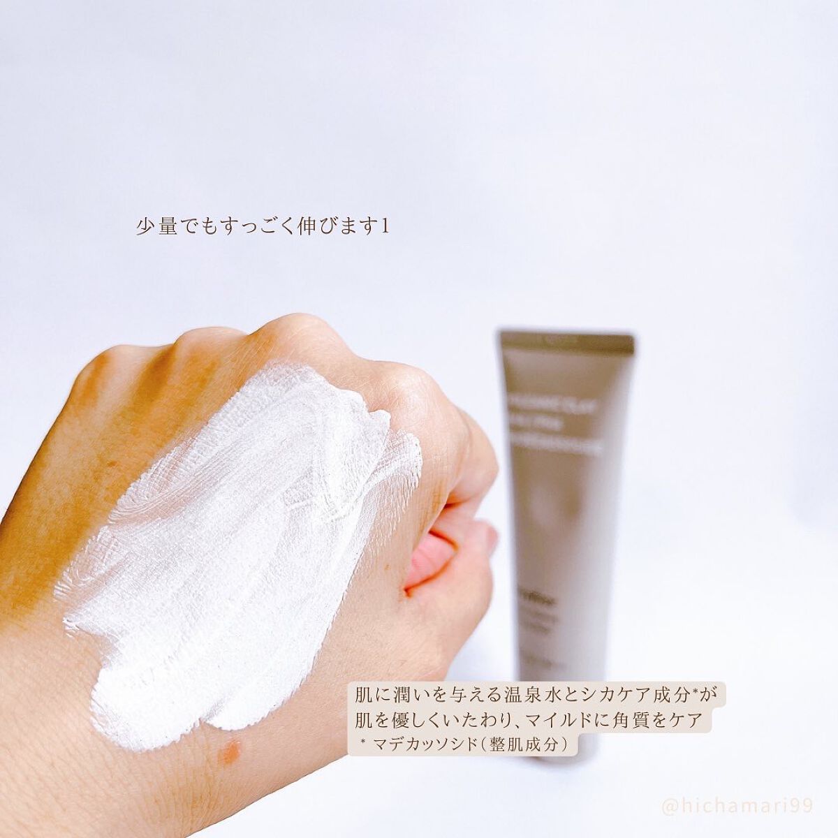 - 皮脂吸着成分ヴォルカニック スフィア*が毛穴の汚れを取り除き、マイルドな毛穴ケアができるクレイマスク * 火山灰、(乳酸/グリコール酸)コポリマー 1.「Clay」+「Peeling」の新感覚のクレイマスク チェジュの火山灰を含む皮脂吸着成分ヴォルカニック スフィア*¹が毛穴の汚れや余分な皮脂を吸着して毛穴のお掃除。さらに、ピーリング成分のAHA*²/PHA*³が負担かけず、余分な角質を取り除き、肌のごわつきや毛穴汚れをマイルドにケアし、なめらかでクリアな素肌へ導きます。 *¹ 火山灰、(乳酸/グリコール酸)コポリマー *² 乳酸 *³ グルコノラクトン(整肌成分) 2.シカケア成分でマイルドに叶える角質ケア 肌に潤いを与える温泉水とシカケア成分*⁴が肌を優しくいたわり、マイルドな角質ケアを叶えます。 *⁴ マデカッソシド(整肌成分) 3.スルっと伸びるなめらかなウォータリークリームテクスチャー うるおい感たっぷりの生クリームのような柔らかいテクスチャーが少量でも伸びやすく、指でさっと塗れます。 ノンコメドジェニックテスト済* * すべての方にコメド(ニキビのもと)ができないというわけではありません。