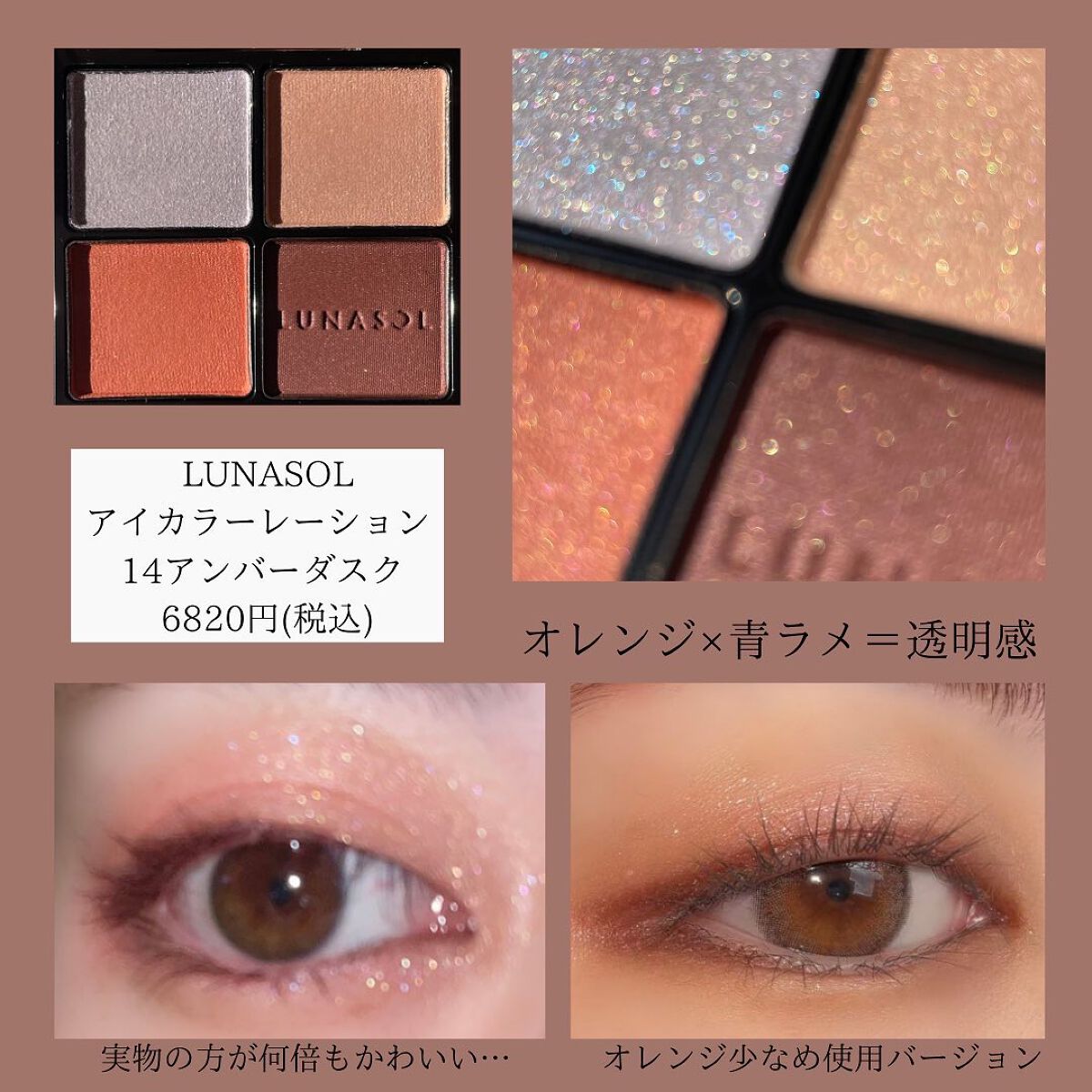 粉質がとにかくしっとり…!デパコスで感じるやつ…! どのパレットもブラウンベースで普段使いしやすいカラー展開です。 オレンジベースにシルバーラメが混ざっていたり コーラルベースにローズピンクやココアブラウンが混ざっていたり! あまり偏らずに使えるのがこれまた好きなポイントっ🫶 かっこいい雰囲気ならウインターグレイ、女性的な雰囲気ならティーローズ、大人っぽいならイノセントピーチ、カジュアルならオレンジアーモンド パーソナルカラー分からないよ〜という方は 過去投稿に似合うコスメを選ぶポイント上げているのでやってみてね🥰
