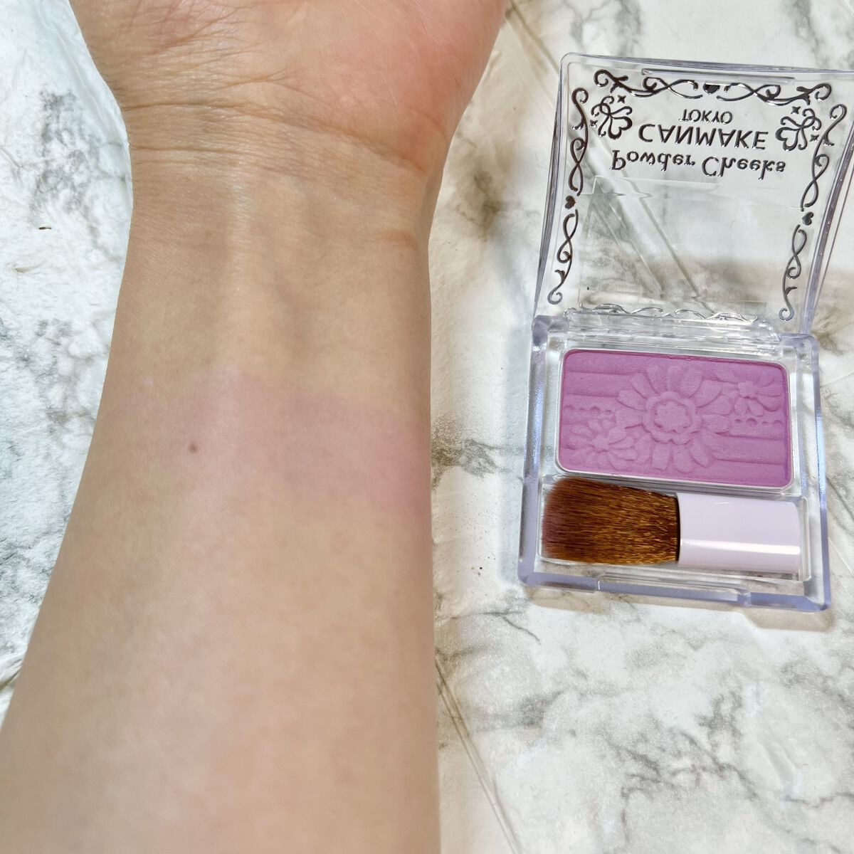 しっとりふわっと発色なのでナチュラルに火照り顔をつくれます。 繊細なパール配合でチラチラ輝くツヤほっぺに✨ 色味はセザンヌのミルクモーヴに似てる!?キャンメイクのが彩度高く、明度低め