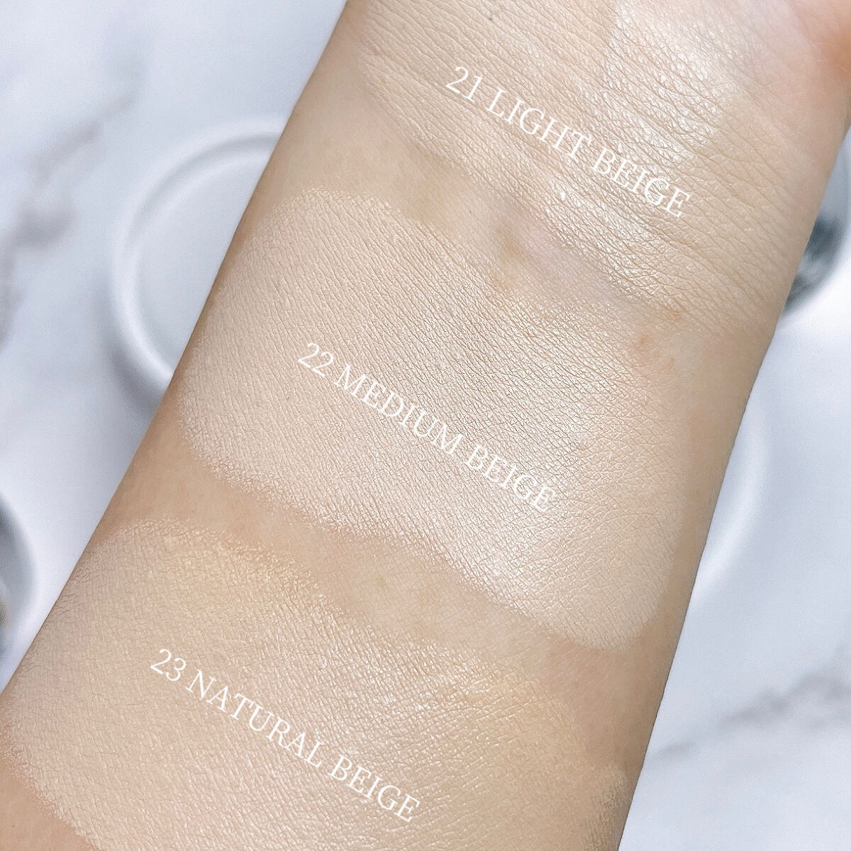 - <21 ライトベージュ 本体> 水、酸化チタン、フェニルトリメチコン、イソノナン酸イソノニル、シクロペンタシロキサン、BG、グリセリン、メトキシケイヒ酸エチルヘキシル、セチルPEG/PPG-10/1ジメチコン、酸化亜鉛、トリ(カプリル酸/カプリン酸)グリセリル、ナイアシンアミド、シクロヘキサシロキサン、1,2-ヘキサンジオール、ジステアルジモニウムヘクトライト、合成フルオロフロゴパイト、ビス(PEG/PPG-14/14)ジメチコン、硫酸Mg、ステアリン酸イヌリン、トリ(ベヘン酸/イソステアリン酸/エイコサン二酸)グリセリル、酸化鉄、(アクリレーツ/メタクリル酸ポリトリメチルシロキシ)コポリマー、ジイソステアリン酸ポリグリセリル-2、水酸化Al、ステアリン酸、(セテアリルジメチコン/ビニルジメチコン)クロスポリマー、トリエトキシカプリリルシラン、エチルヘキシルグリセリン、ツボクサエキス、カミツレ花、カプリル酸グリセリル、ジメチコン、香料、アデノシン、EDTA-2Na、マンニトール、カプリリルグリコール、合成ヒト遺伝子組換オリゴペプチド-1 <22 ミディアムベージュ 本体> 水、酸化チタン、フェニルトリメチコン、イソノナン酸イソノニル、BG、グリセリン、メトキシケイヒ酸エチルヘキシル、シクロペンタシロキサン、セチルPEG/PPG-10/1ジメチコン、酸化亜鉛、トリ(カプリル酸/カプリン酸)グリセリル、ナイアシンアミド、シクロヘキサシロキサン、1,2-ヘキサンジオール、ジステアルジモニウムヘクトライト、イソドデカン、合成フルオロフロゴパイト、ビス(PEG/PPG-14/14)ジメチコン、(アクリレーツ/メタクリル酸ポリトリメチルシロキシ)コポリマー、ステアリン酸イヌリン、硫酸Mg、酸化鉄、トリ(ベヘン酸/イソステアリン酸/エイコサン二酸)グリセリル、ジイソステアリン酸ポリグリセリル-2、カプリル酸グリセリル、水酸化Al、ステアリン酸、ジメチコン、(セテアリルジメチコン/ビニルジメチコン)クロスポリマー、トリエトキシカプリリルシラン、エチルヘキシルグリセリン、ツボクサエキス、カミツレ花、香料、アデノシン、EDTA-2Na、マンニトール、カプリリルグリコール、合成ヒト遺伝子組換オリゴペプチド-1 <23 ナチュラルベージュ 本体> 水、酸化チタン (CI 77891)、フェニルトリメチコン、イソノナン酸イソノニル、シクロペンタシロキサン、BG、グリセリン、メトキシケイヒ酸エチルヘキシル、セチルPEG/PPG-10/1ジメチコン、酸化亜鉛 (CI 77947)、トリ(カプリル酸/カプリン酸)グリセリル、ナイアシンアミド、シクロヘキサシロキサン、1,2-ヘキサンジオール、ジステアルジモニウムヘクトライト、ビス(PEG/PPG-14/14)ジメチコン、酸化鉄 (CI 77492)、硫酸Mg、ステアリン酸イヌリン、トリ(ベヘン酸/イソステアリン酸/エイコサン二酸)グリセリル、(アクリレーツ/メタクリル酸ポリトリメチルシロキシ)コポリマー、ジイソステアリン酸ポリグリセリル-2、合成フルオロフロゴパイト、水酸化Al、酸化鉄 (CI 77491)、ステアリン酸、トリエトキシカプリリルシラン、(セテアリルジメチコン/ビニルジメチコン)クロスポリマー、酸化鉄 (CI 77499)、エチルヘキシルグリセリン、ツボクサエキス、カミツレ花、カプリル酸グリセリル、ジメチコン、香料、アデノシン、EDTA-2Na、マンニトール、カプリリルグリコール、合成ヒト遺伝子組換オリゴペプチド-1